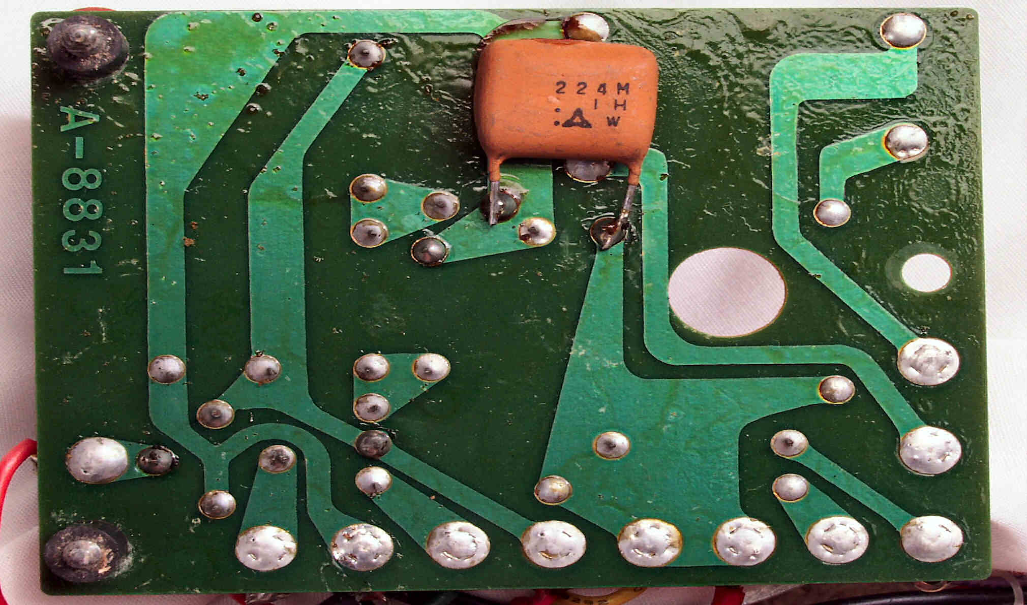 C1C1. 修理前 制御基板裏。 もう少し半田が欲しい
