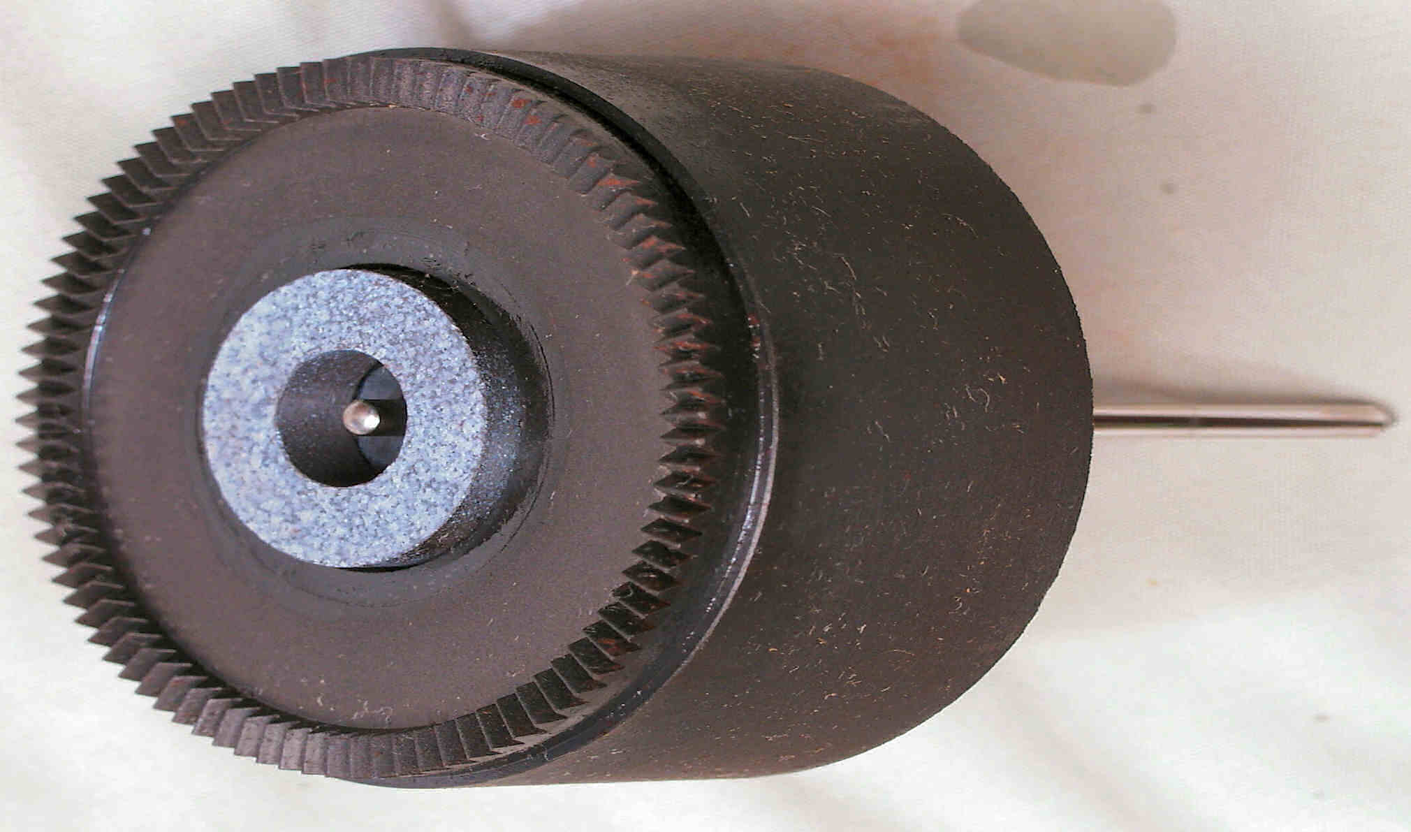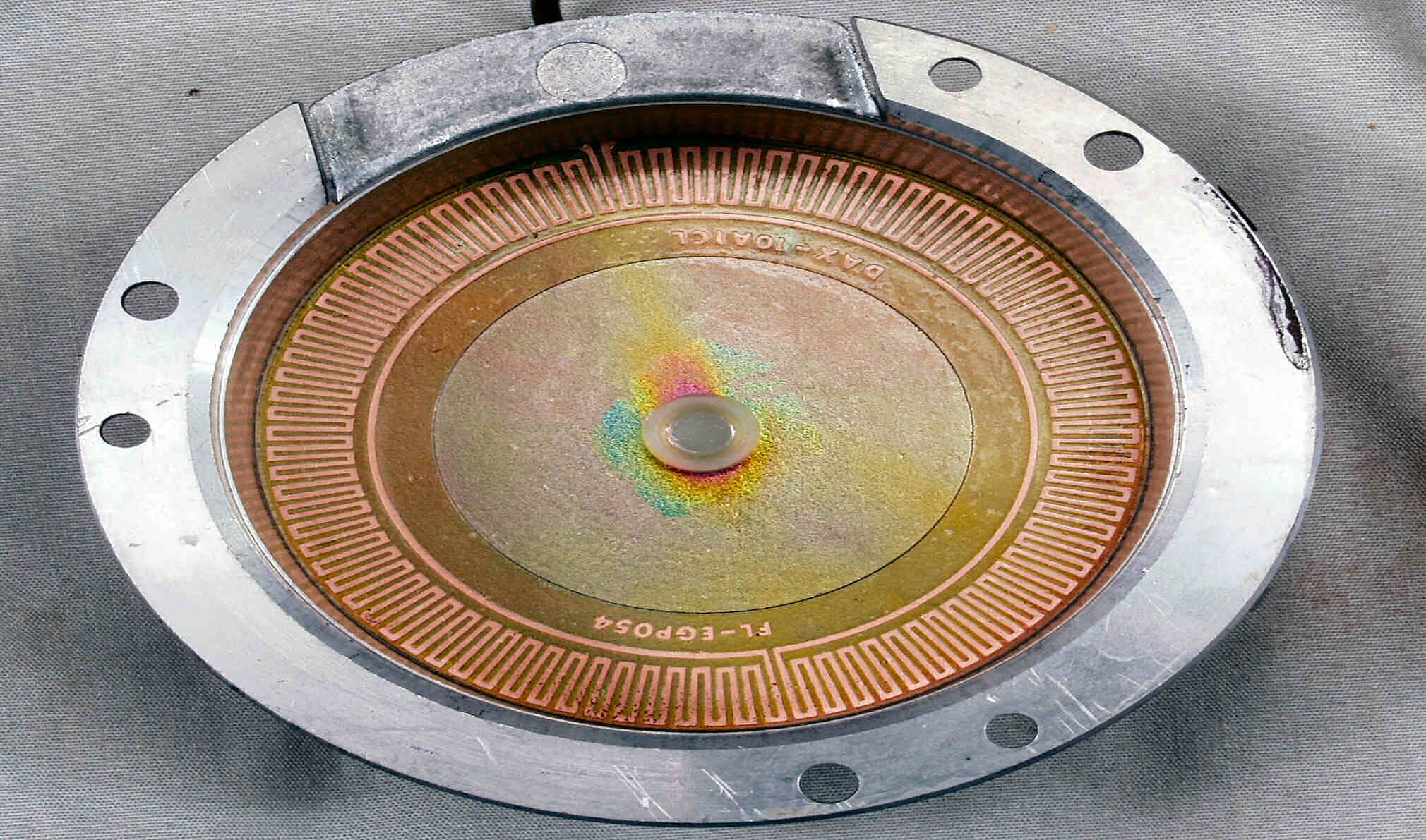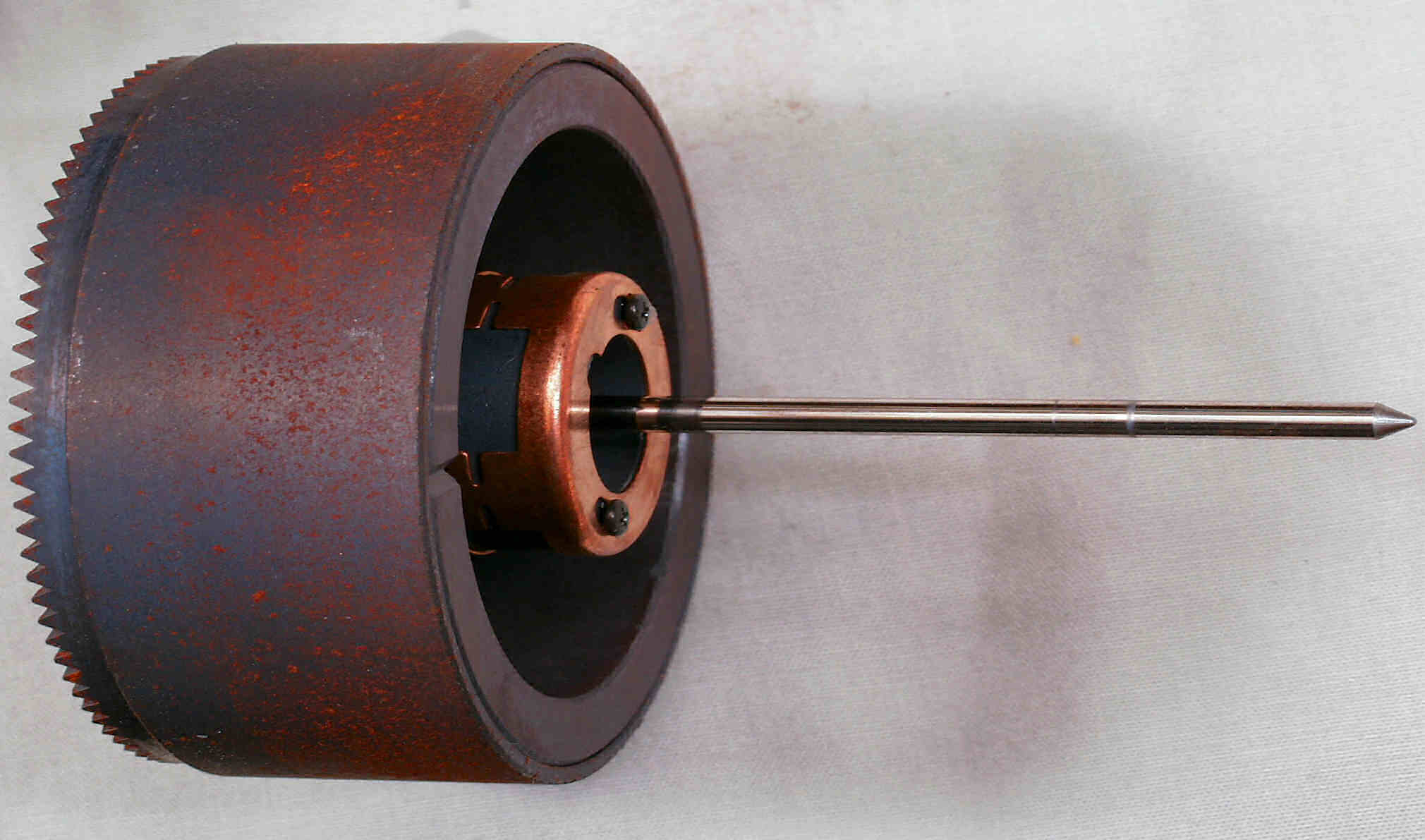 C6C. 修理前 ターンテーブルを裏から見る(拡大)。軸付近に錆びが発生。