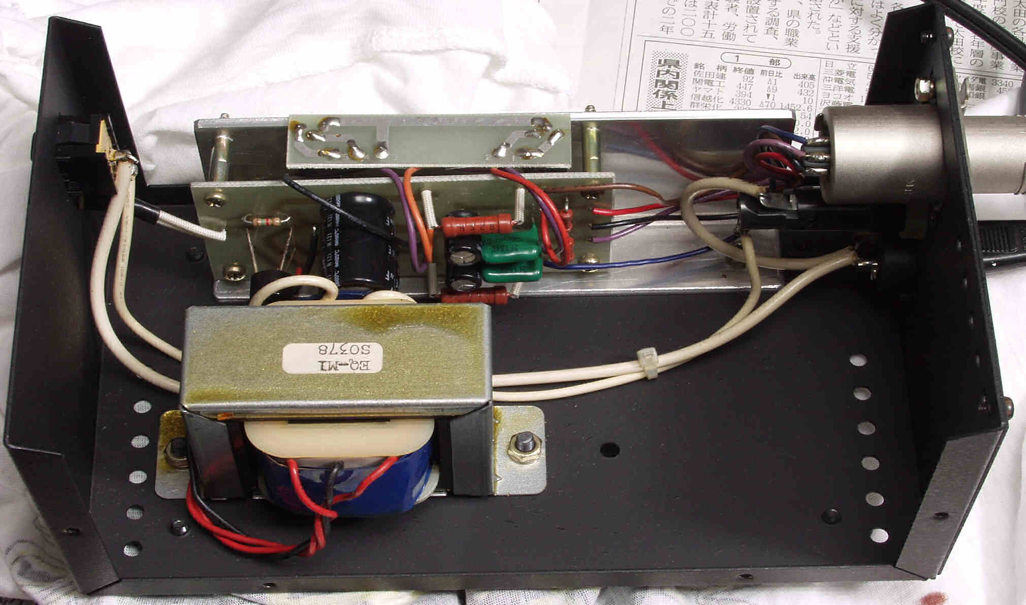 C1A. 修理前 AMP基盤 スルホール両面基盤を使用した立派なもの、右のトランスはバランス出力用