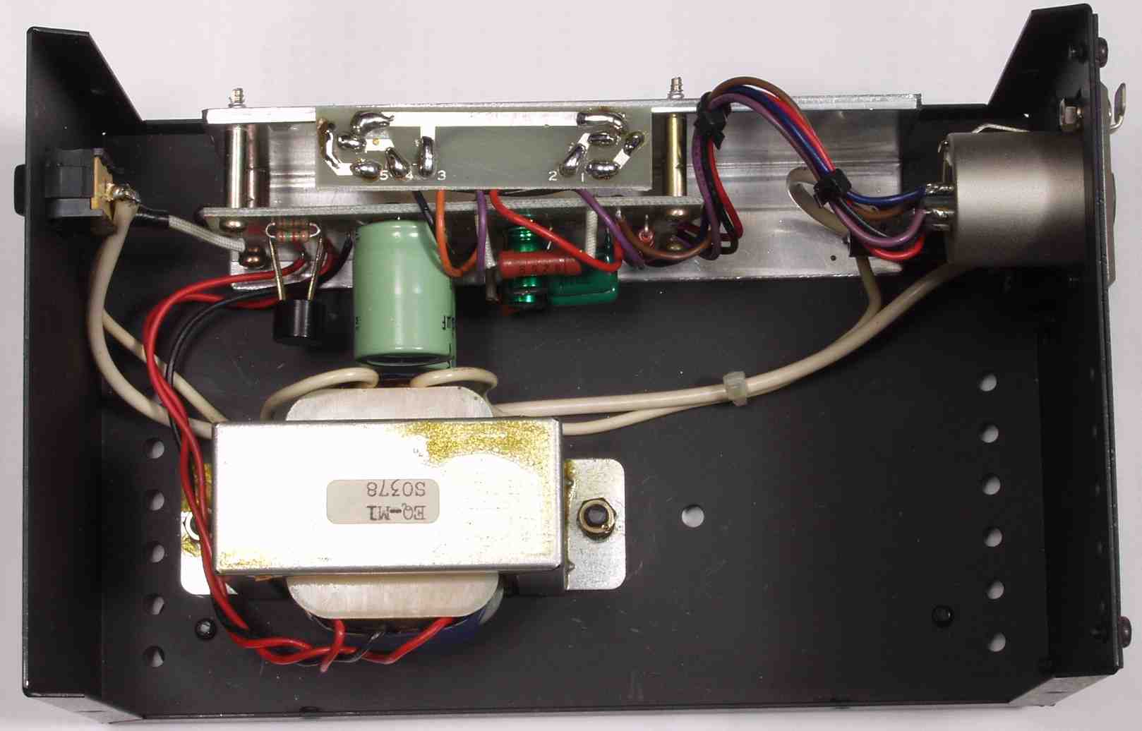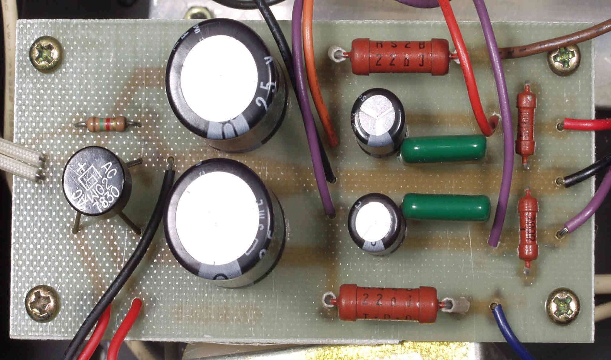 C2A. 修理前 電源部全体 バッテリー使用の設計ですが、もう少し大容量の電解コンデンサーが欲しい
