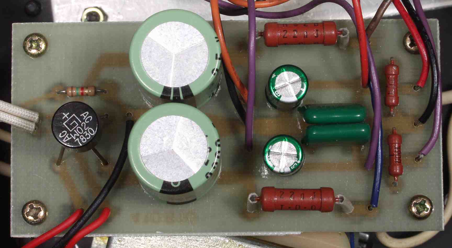 C3B. 修理後 電源部基盤 電解コンデンサー4個交換 左2個は増量