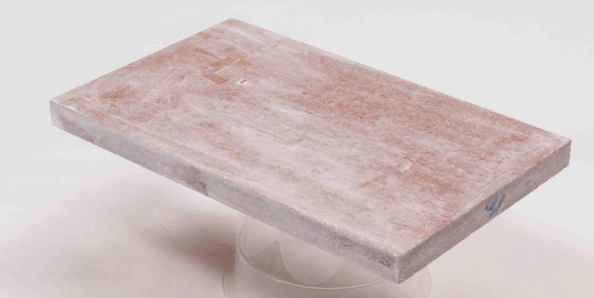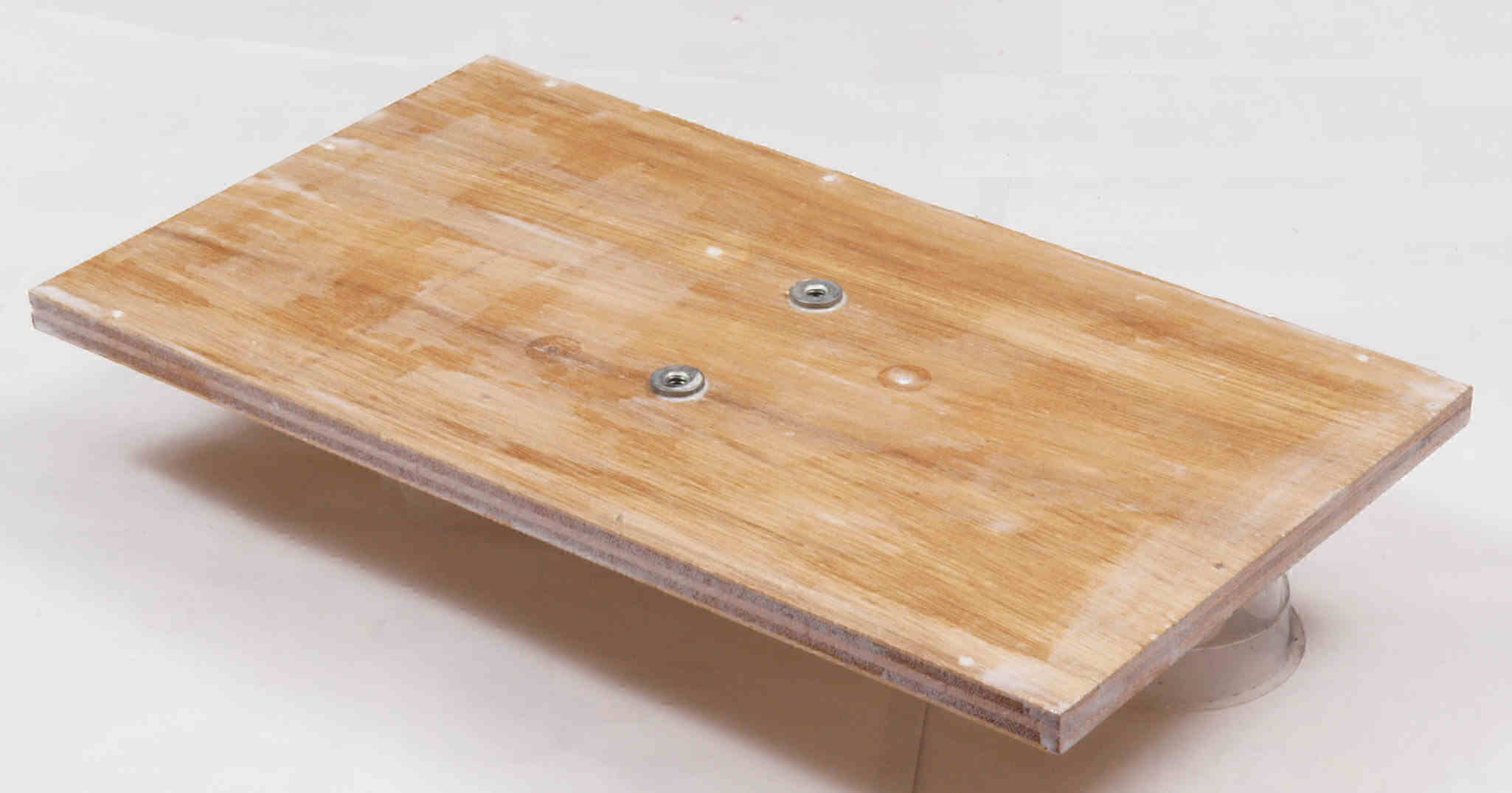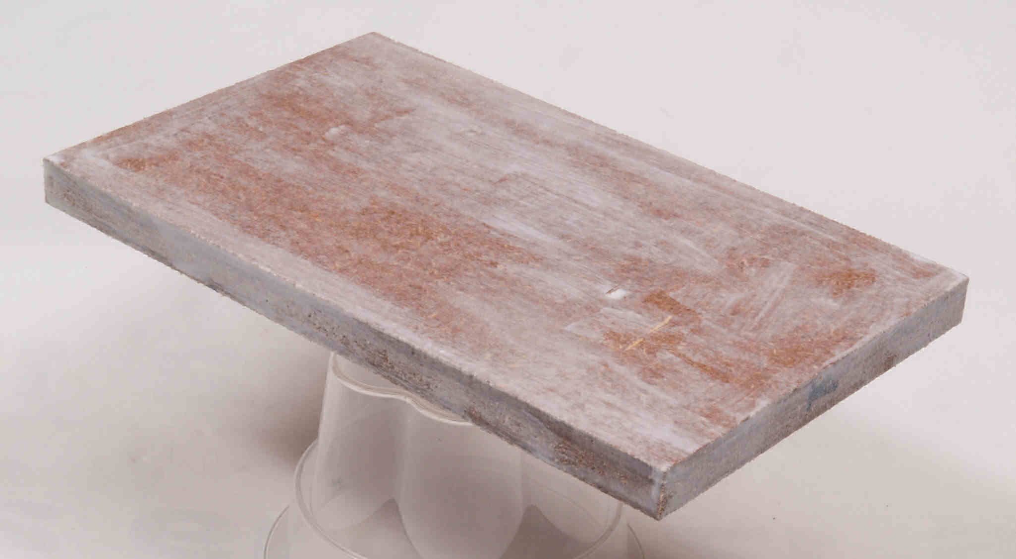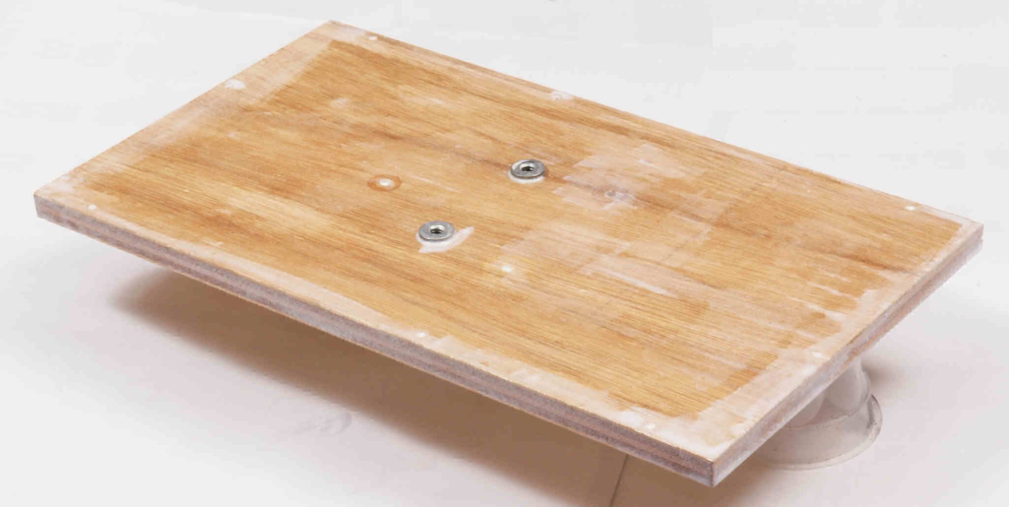 C35. 修理中 接着材が劣化した木箱、下後左から見る。圧縮板にボンドを塗って固めている。