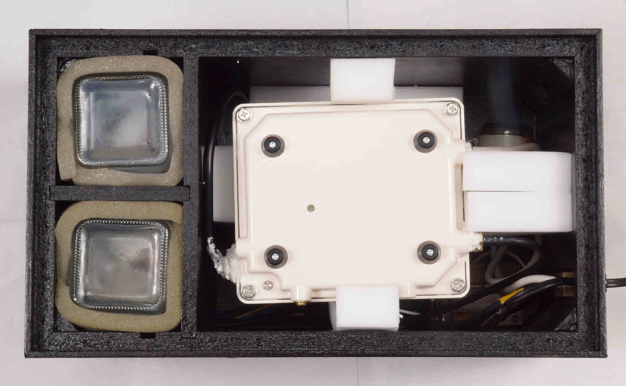 A32. 点検中、 下蓋取り、下から見る。仕切り板が接着されている。