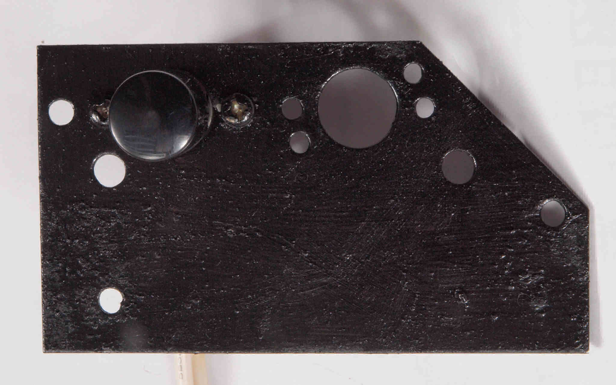 CA4. 修理(塗装)後 電源SW・LED取付金具裏。塗装する、SWのボタンが接着してあるので、取り付けたままで塗装する。