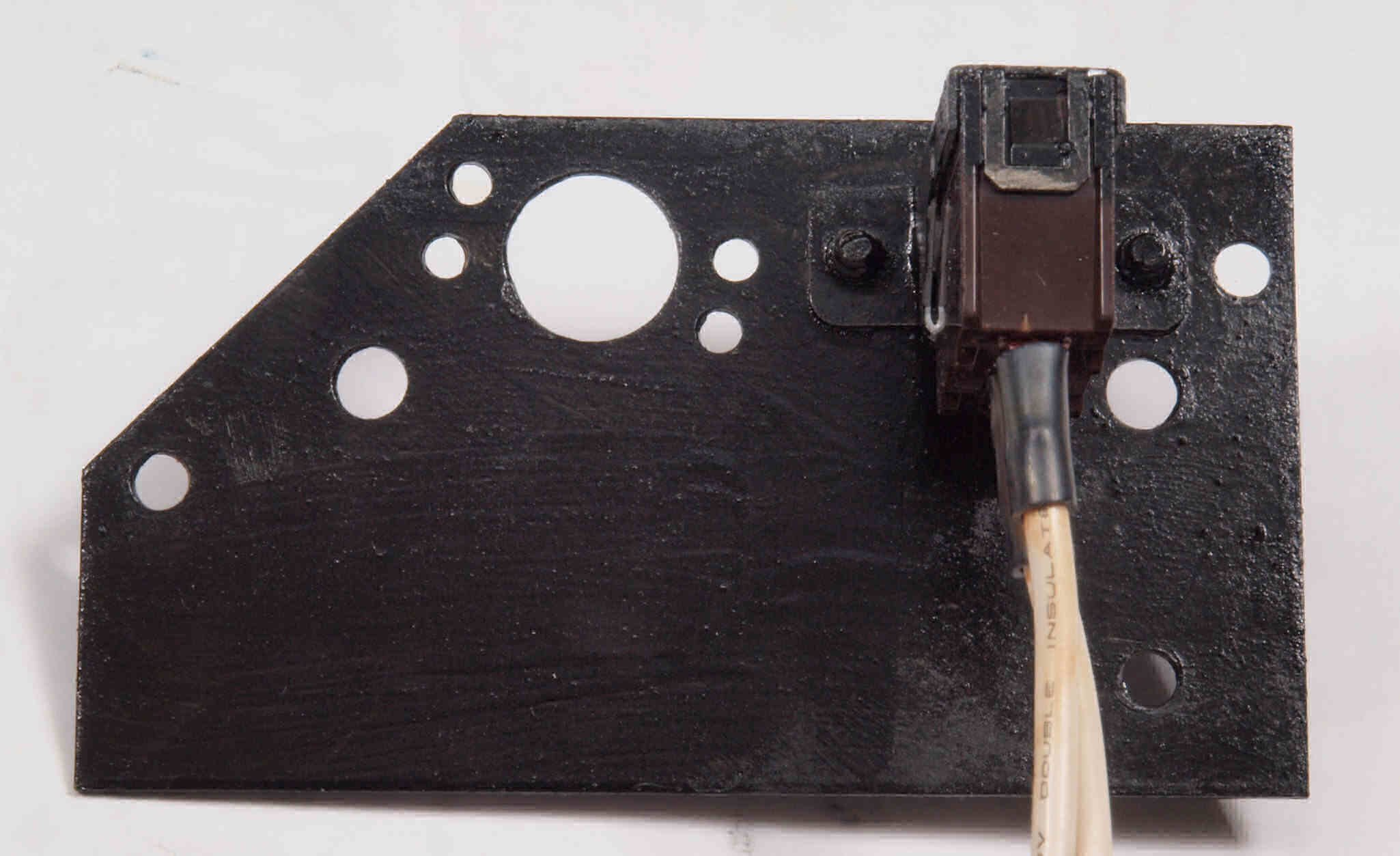 CA2. 修理(塗装)後 電源SW・LED取付金具。塗装する、SWのボタンが接着してあるので、取り付けたままで塗装する。