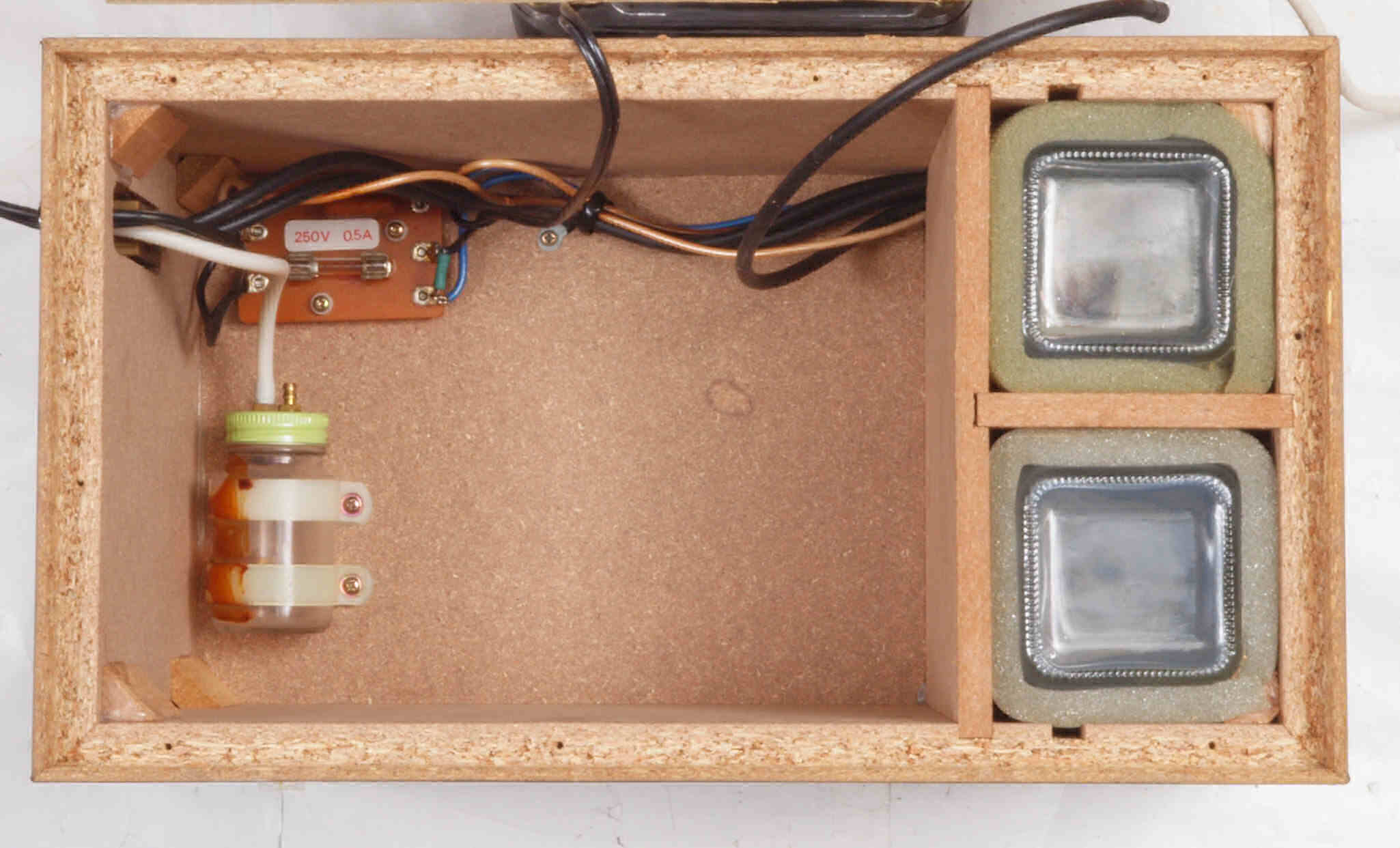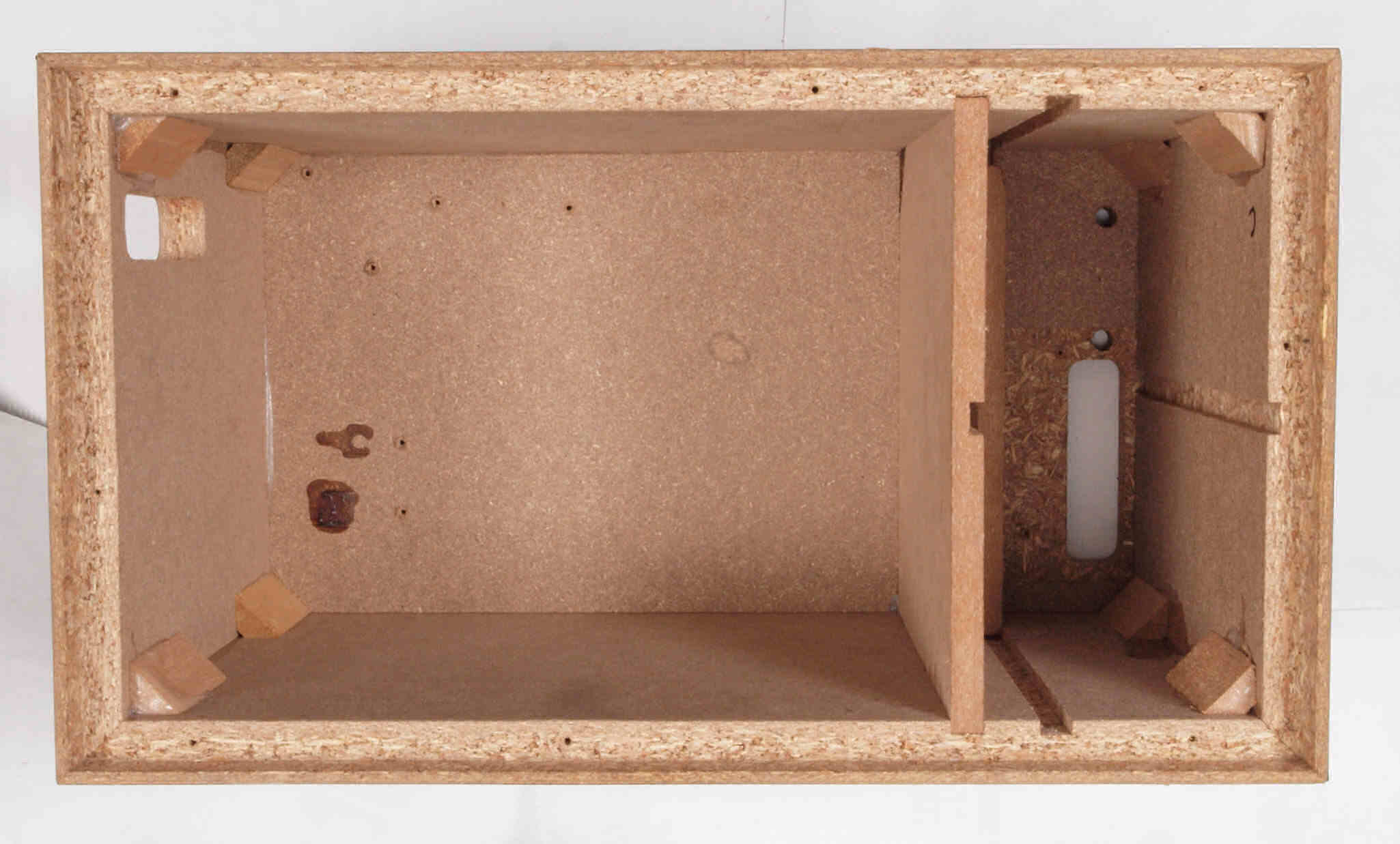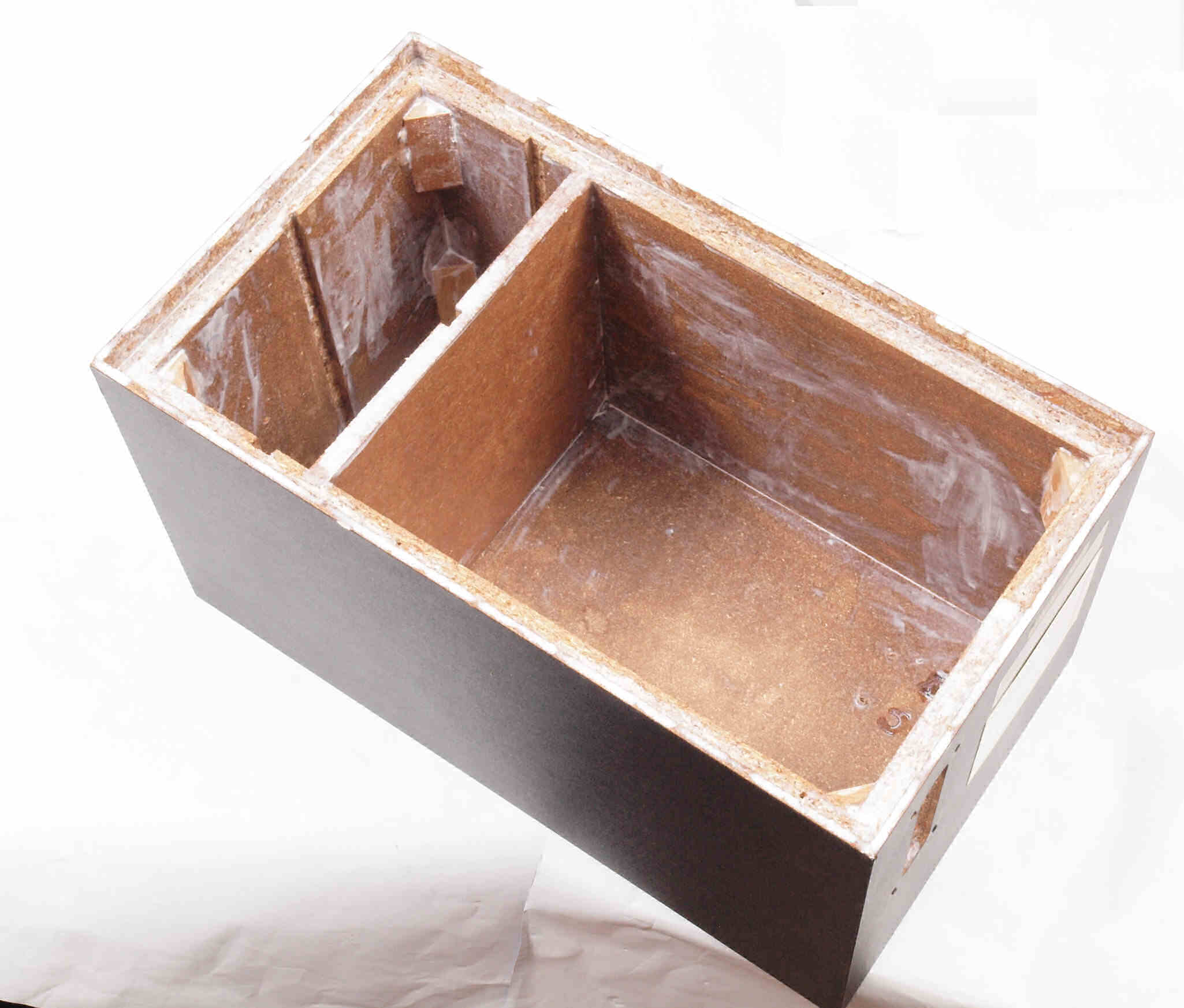 C21. 修理前 圧縮材の接着材が劣化した木箱。仕切り板が接着されている。
