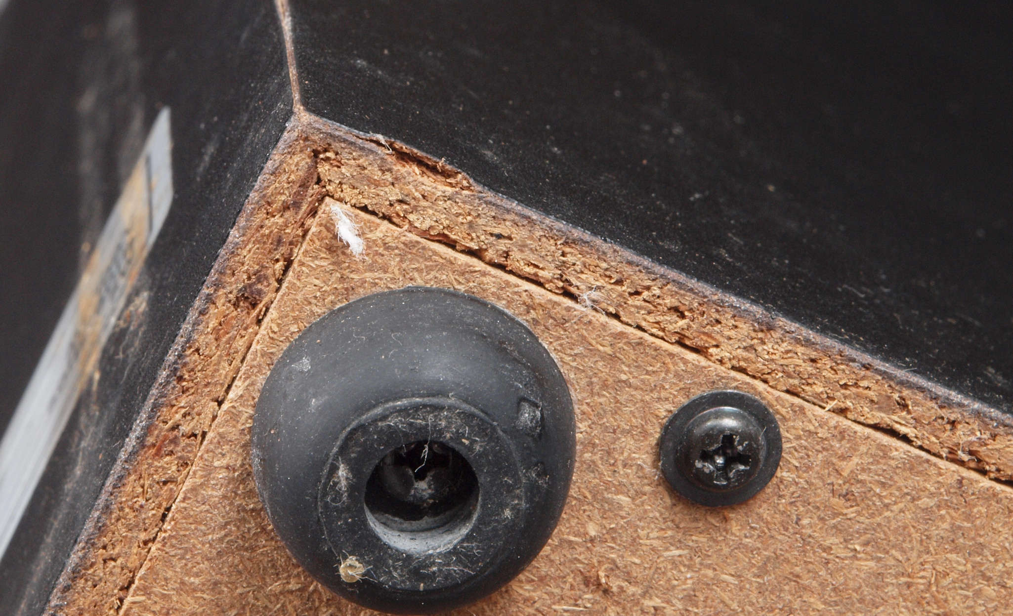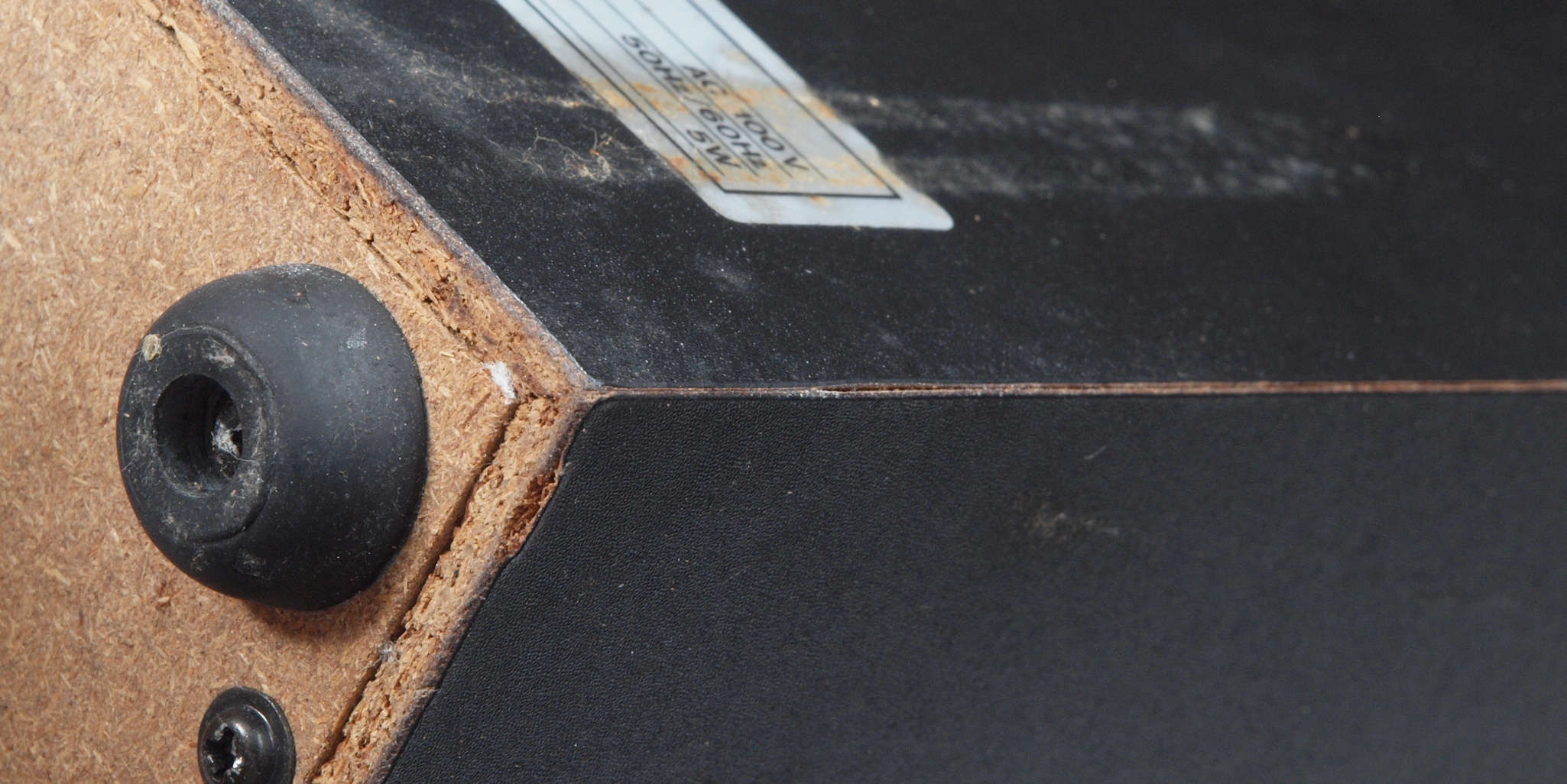 | C31. 修理前 接着材が劣化した木箱。左後内側見る。 |