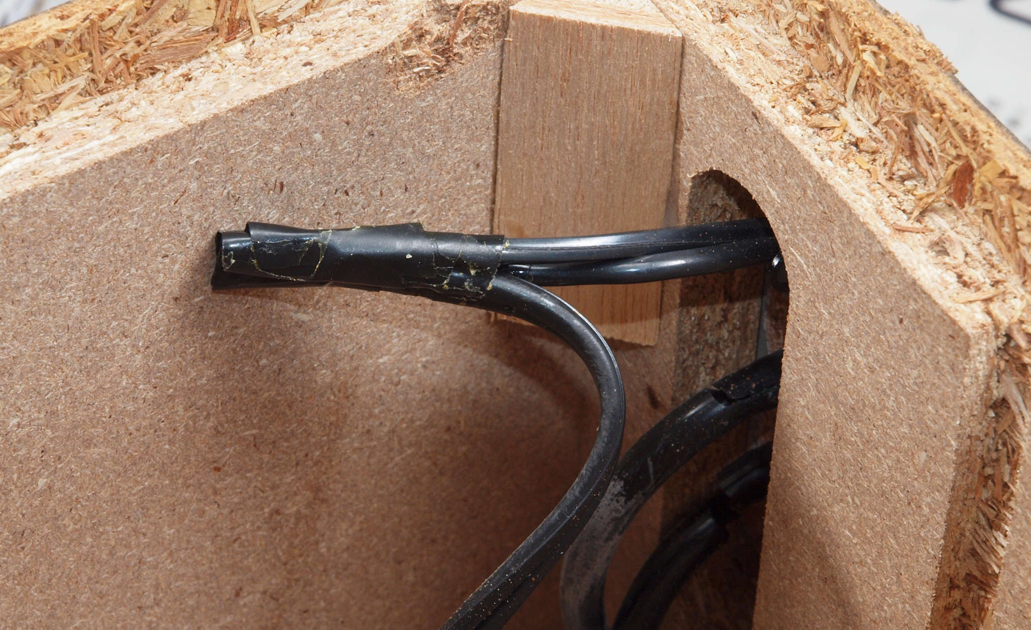 | C52. 修理中 電源入り口・吐出口端子取り付け穴。 ボンドを染みこませる。 |