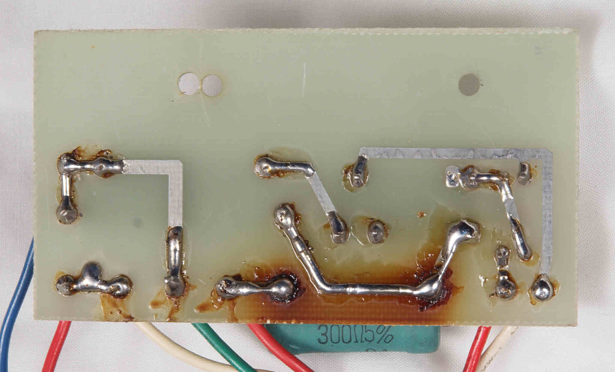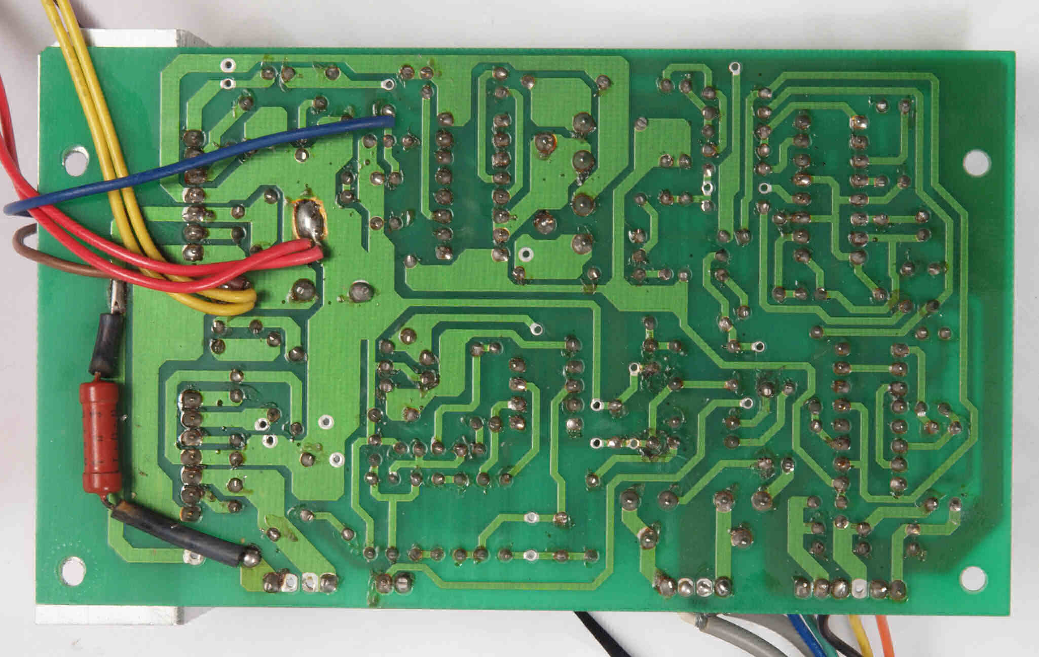 | C24. 修理(半田補正)後 モーターコントロール基板裏。 フイルムコンデンサー1個追加。 | ||||||||||||||||||||||||||||||||||||||||||||||