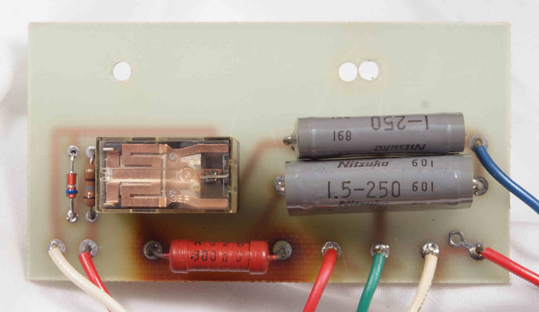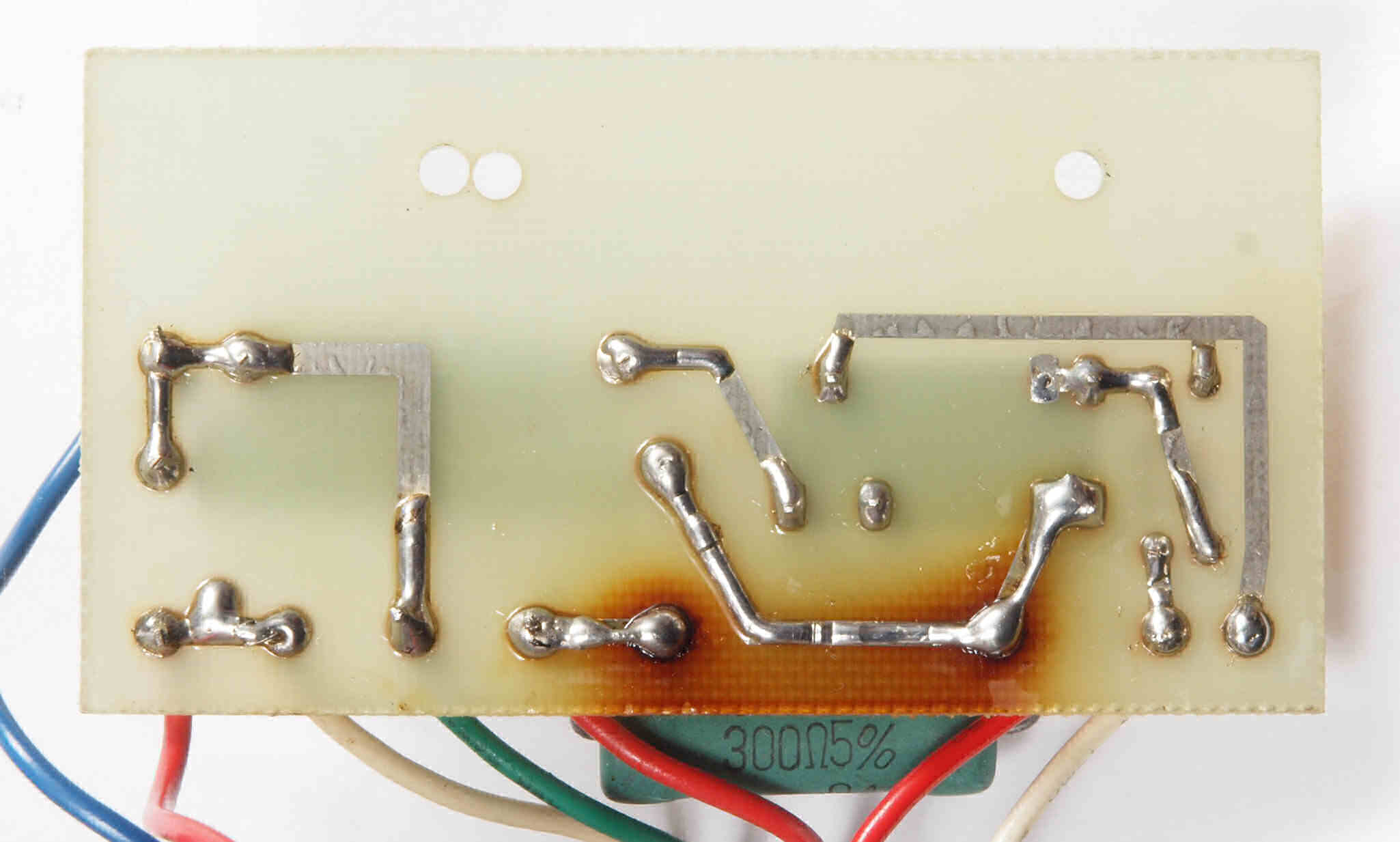 | C31. 修理前 モーター33/45回転切換基板。安定抵抗が酷く焼けている。 | ||||||||||||||||||||||||||||||||||||||||||||||