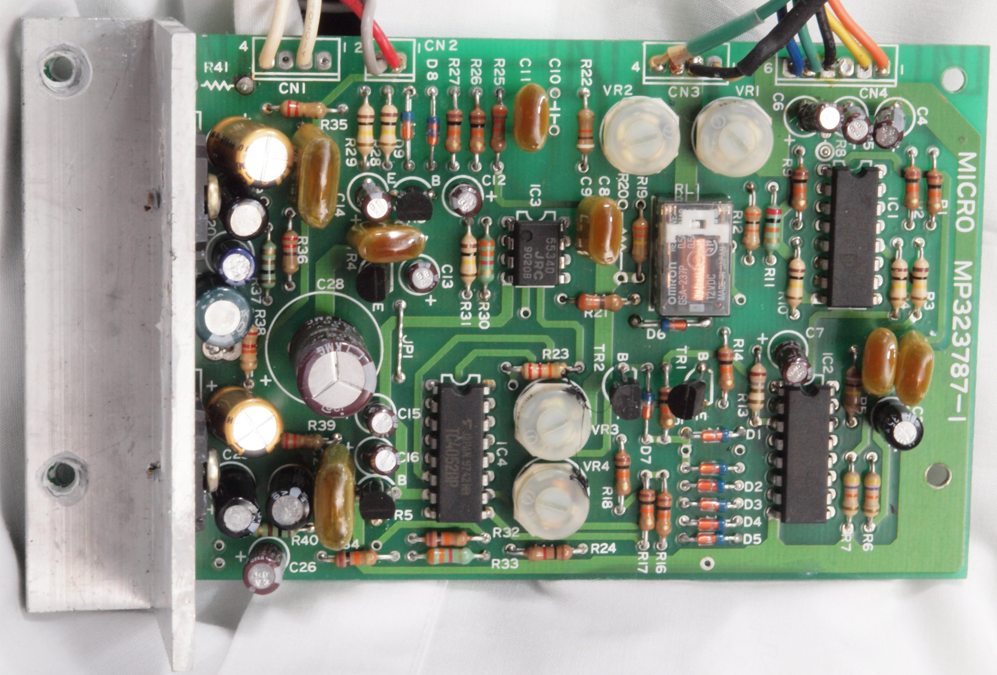 C22. 修理後 モーターコントロール基板、半固定VR4個、電解コンデンサー18個、モーター駆動AMP−IC.2個、全IC交換、抵抗2個追加。