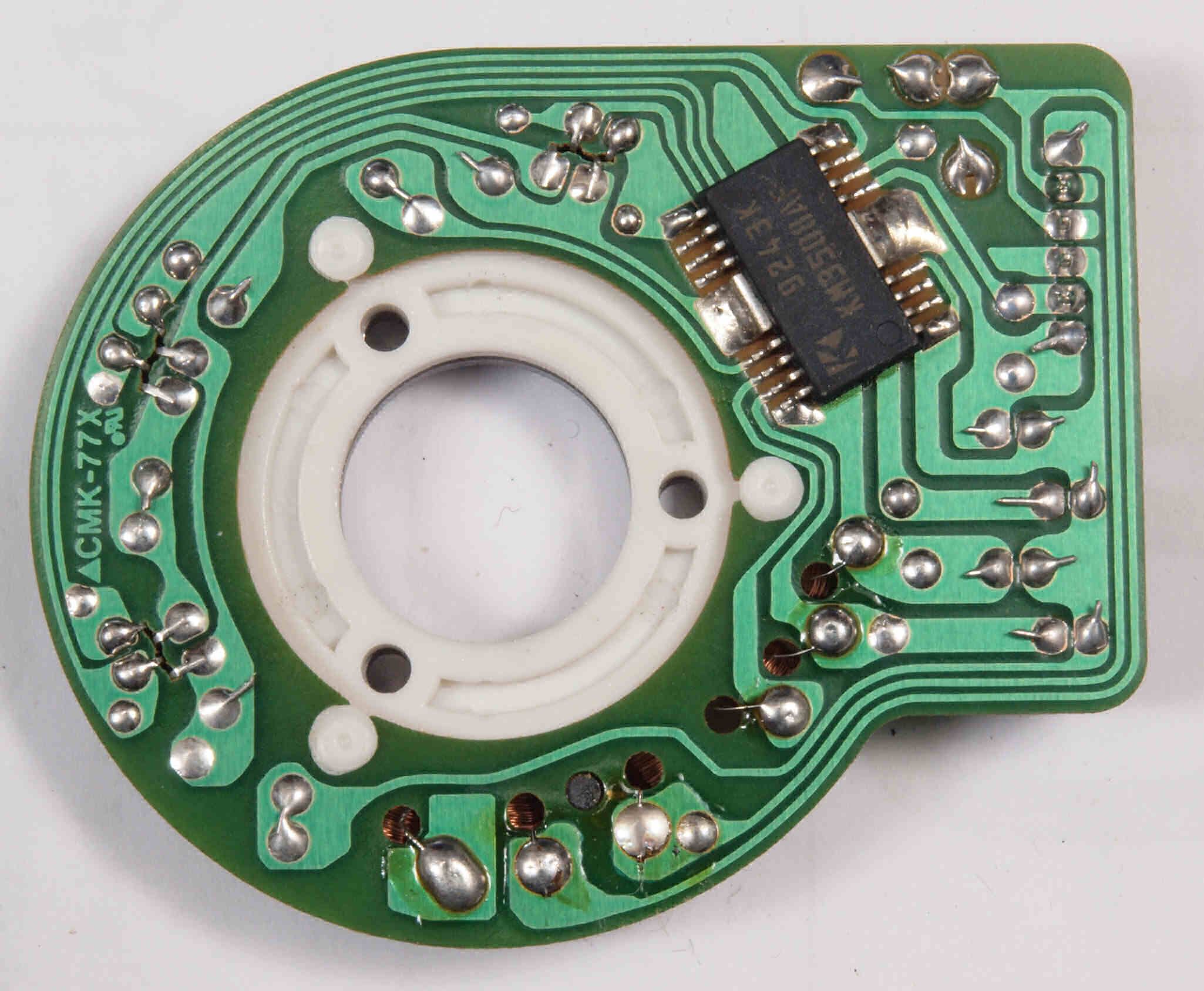 | D15. 完成モーター部コントロール基板裏。余分なフラックスを落として、コート液を塗る。 | ||||||||||||||||||||||||||||||||||||||