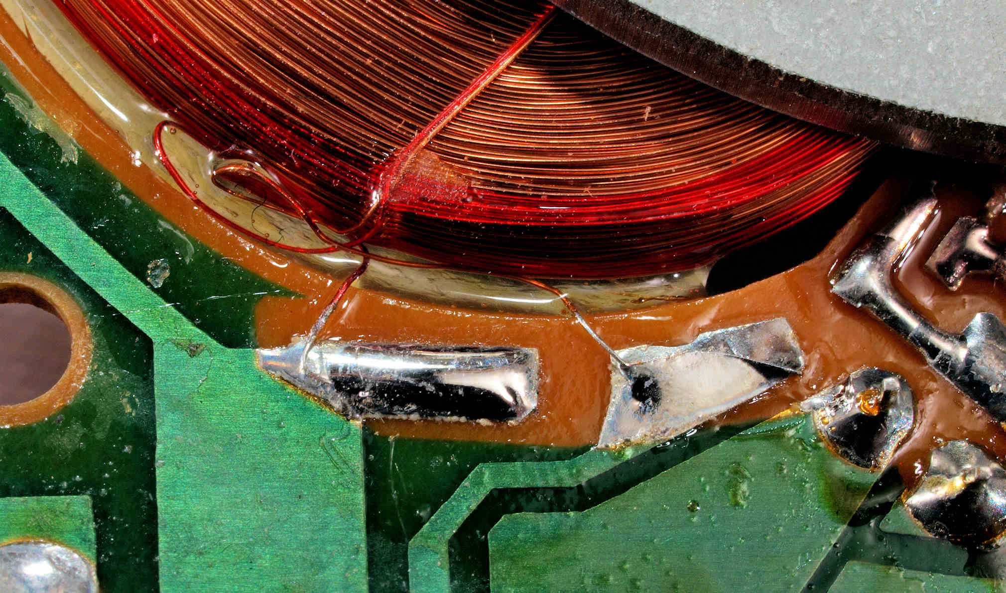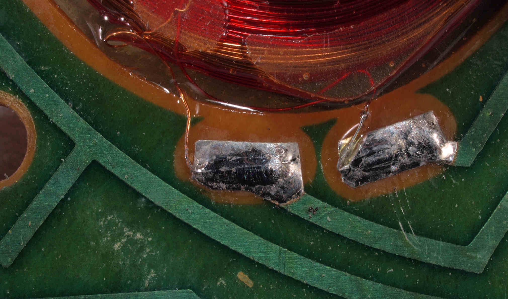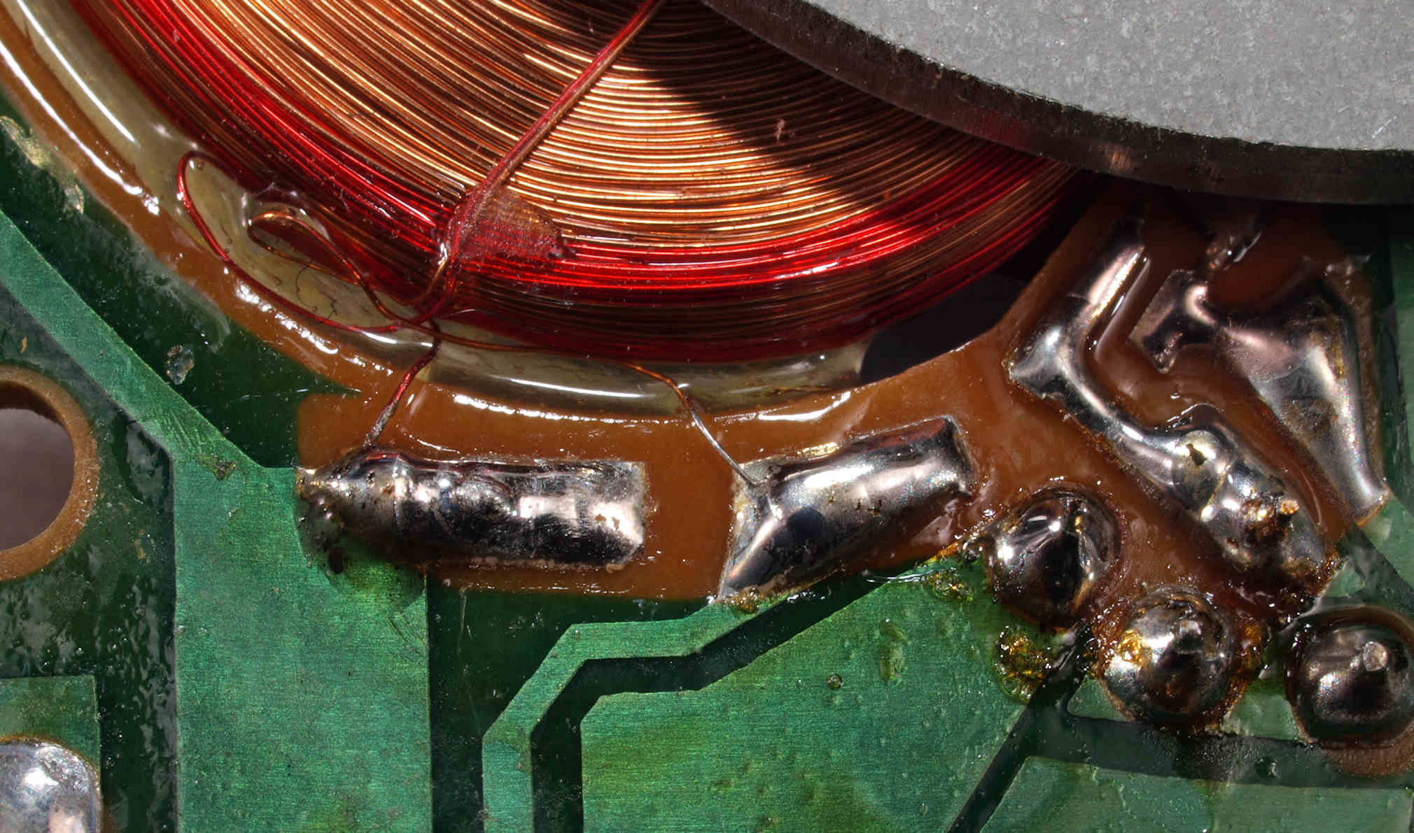 M314. 修理前 モータ回転子・固定子巻き線半田2。
