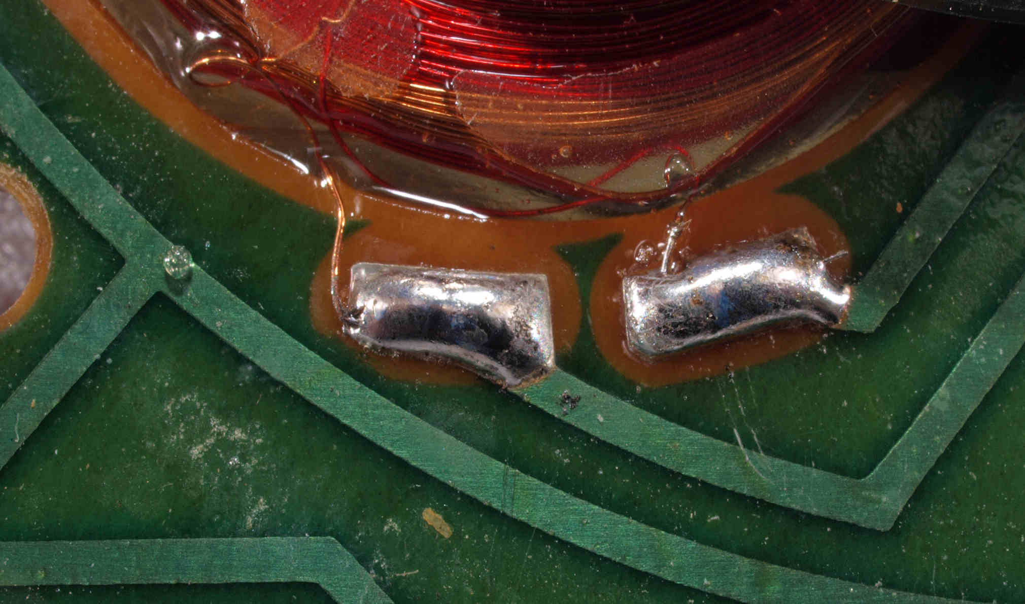 M313. 修理(半田補正)後 モータ回転子・固定子巻き線半田。