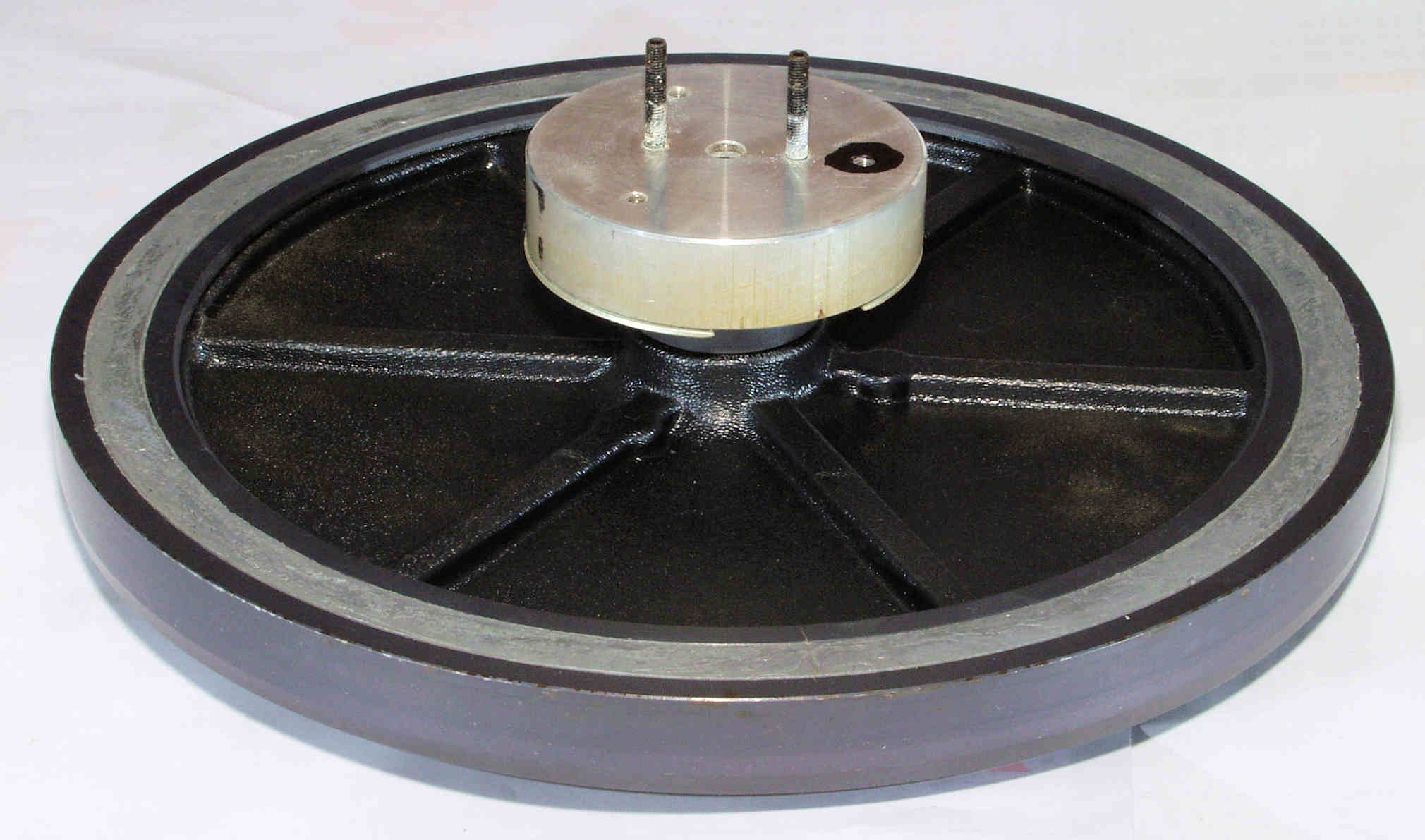 A26. 点検中 下から見る、バランスウエイトのビン、砂鉄を入れて調節する。