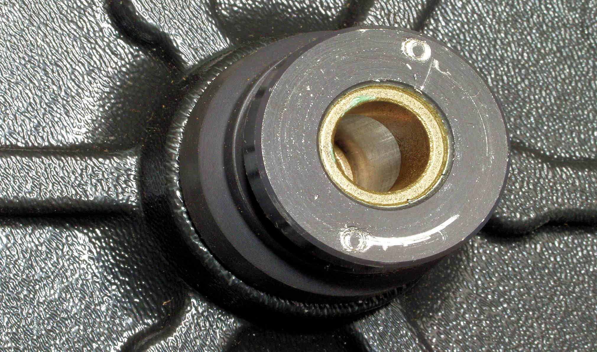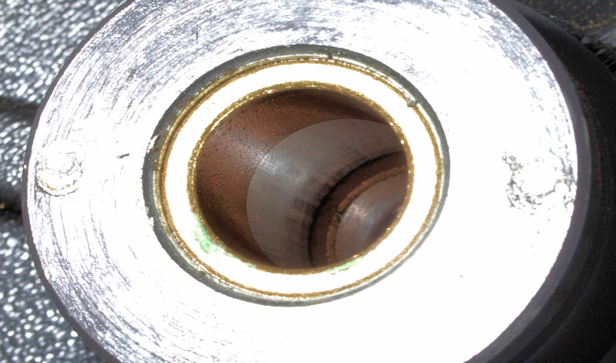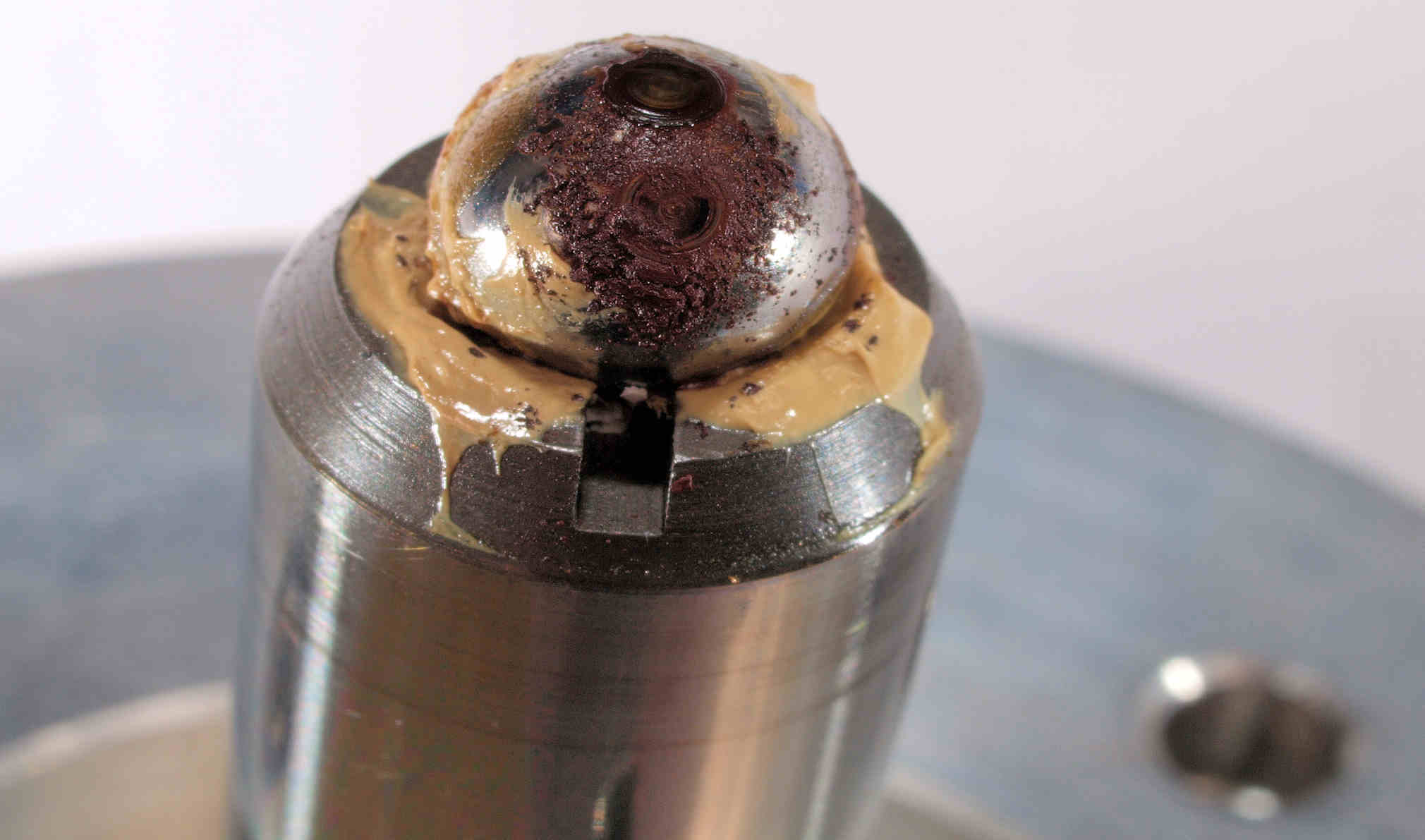 T22. タンテーブルの軸拡大、油分が凝固して、ボールが回転していない。