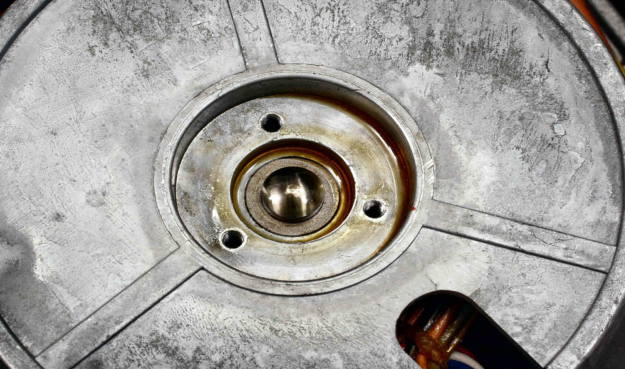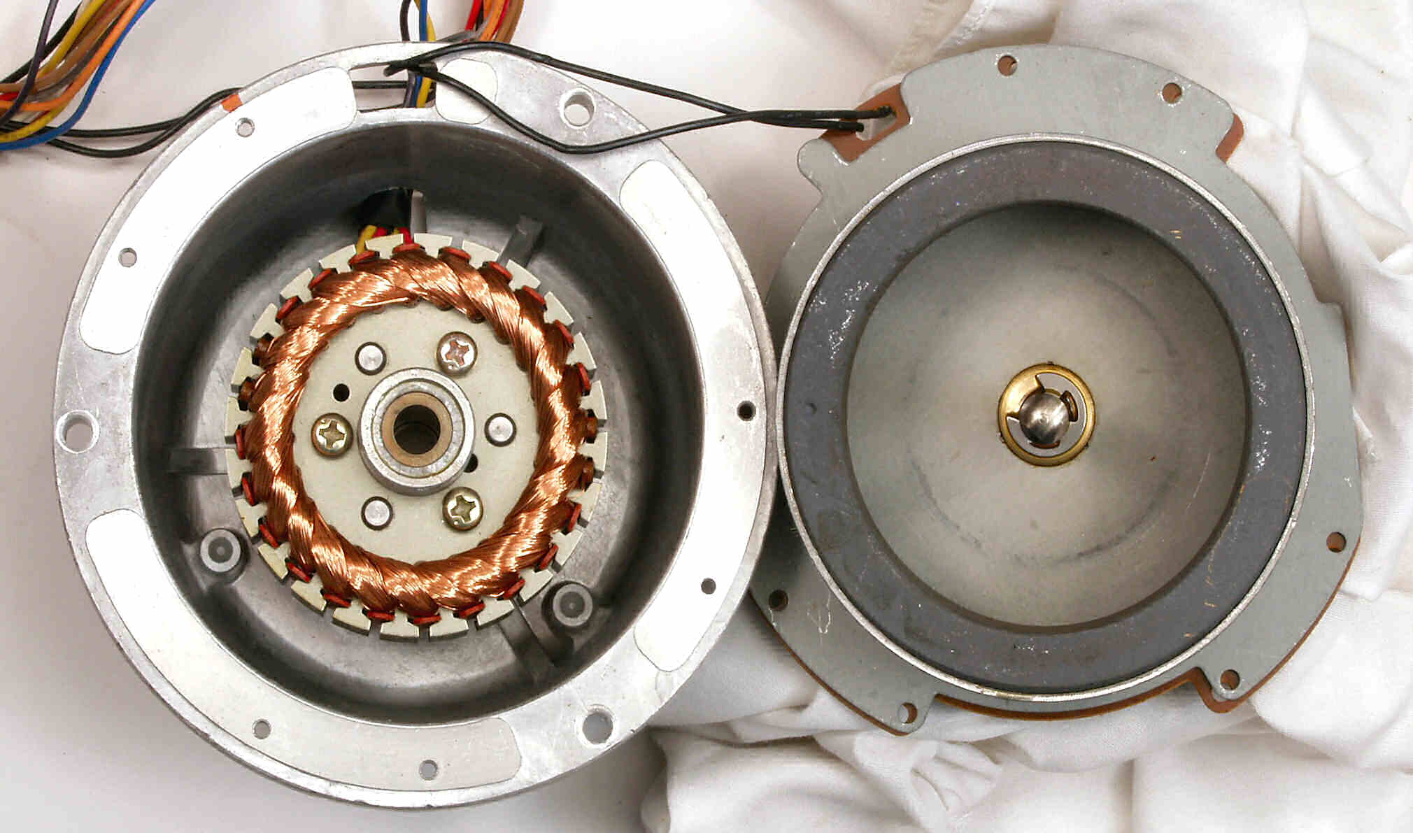 | C21. 修理中 モーターを分解・清掃・給油。 左=固定子、右=アウターロータ | ||||||||||||||||||||||||||||