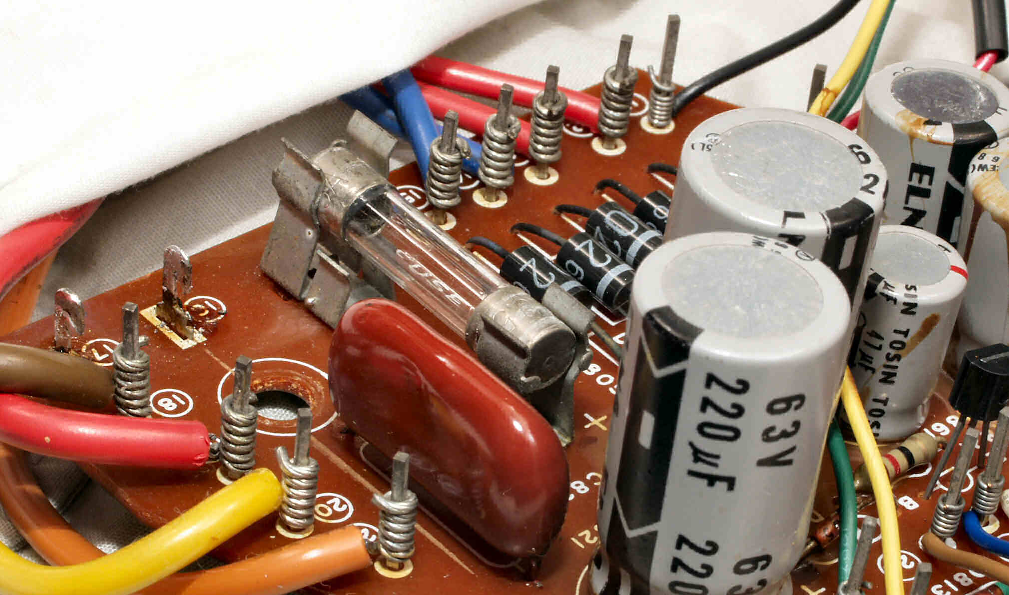 | 注意 タッチ・コントロール操作導入の為、機器のアースラインは内部回路の「+22V」に接続されています。 よって、通電状態で、基板の部品に接触は、厳禁です! ICが劣化や不動になります。 |