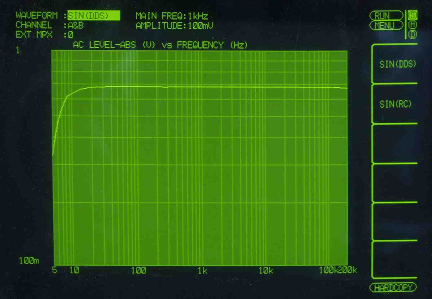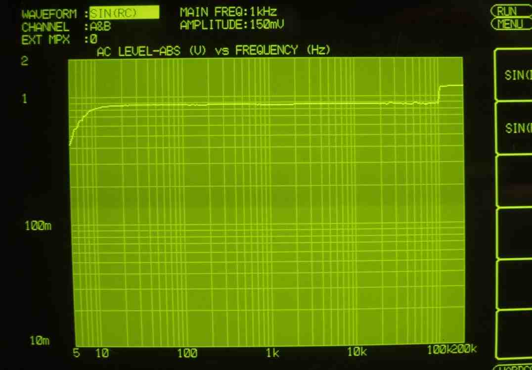 3A.RCA端子交換せず+細いケーブルの測定、100KHZ以後に乱れあり  修理の様子はこちら