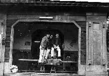 市内本町を練り歩く御輿、上級生が先頭になって、誘導するのは寮役員