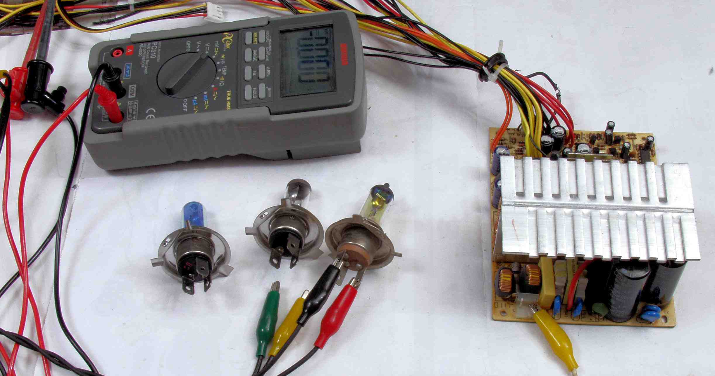 12. 履歴の解らない製品なので、負荷試験を行う。負荷は自動車のヘッドランプを使用。