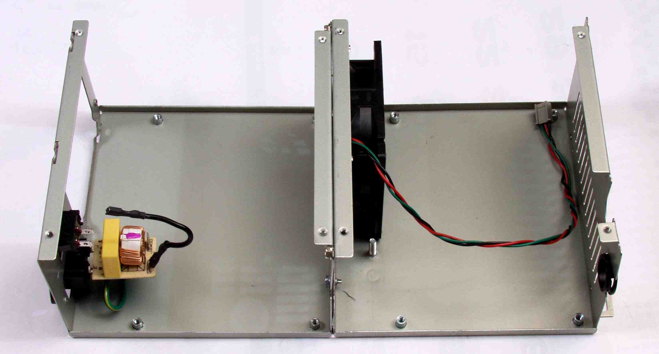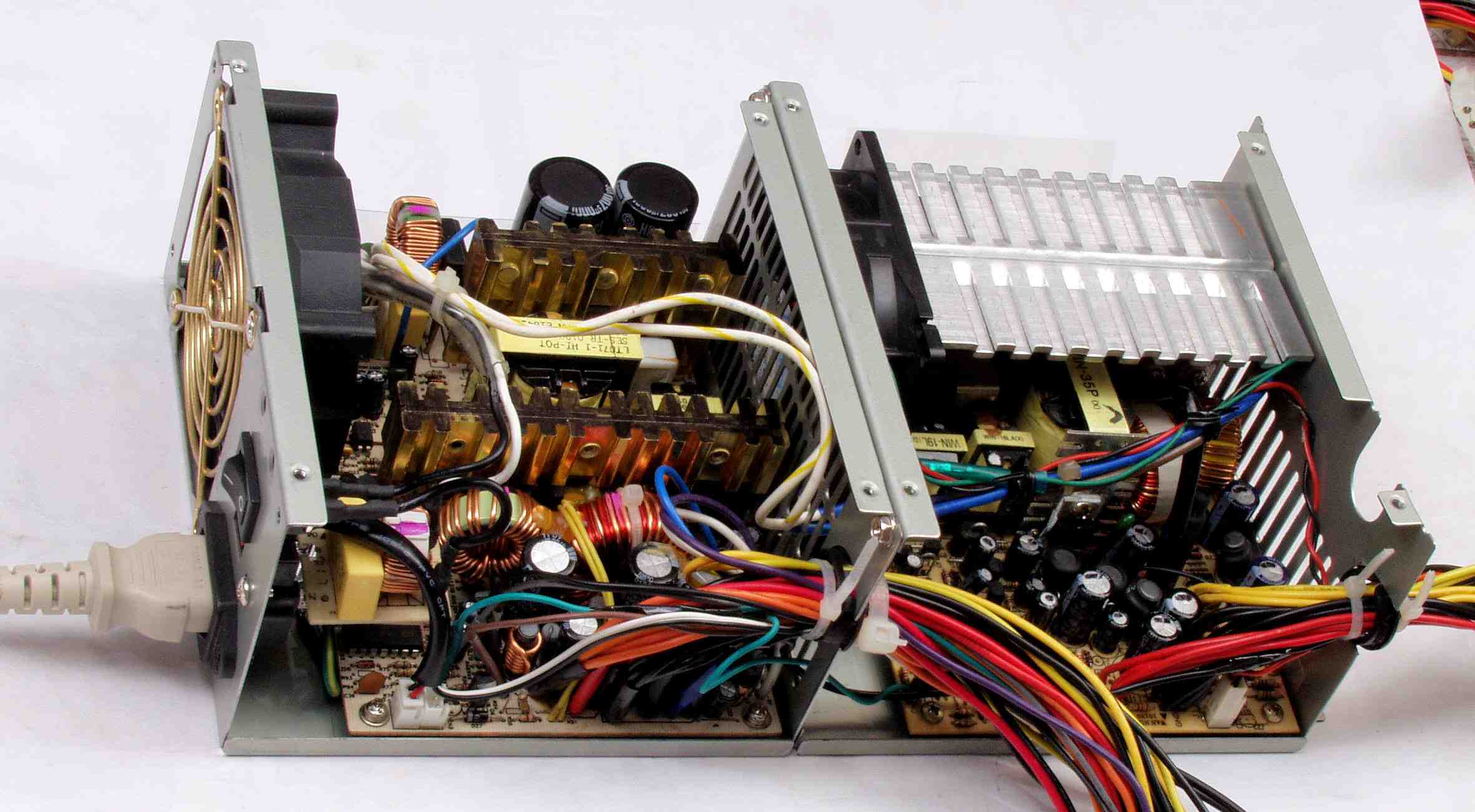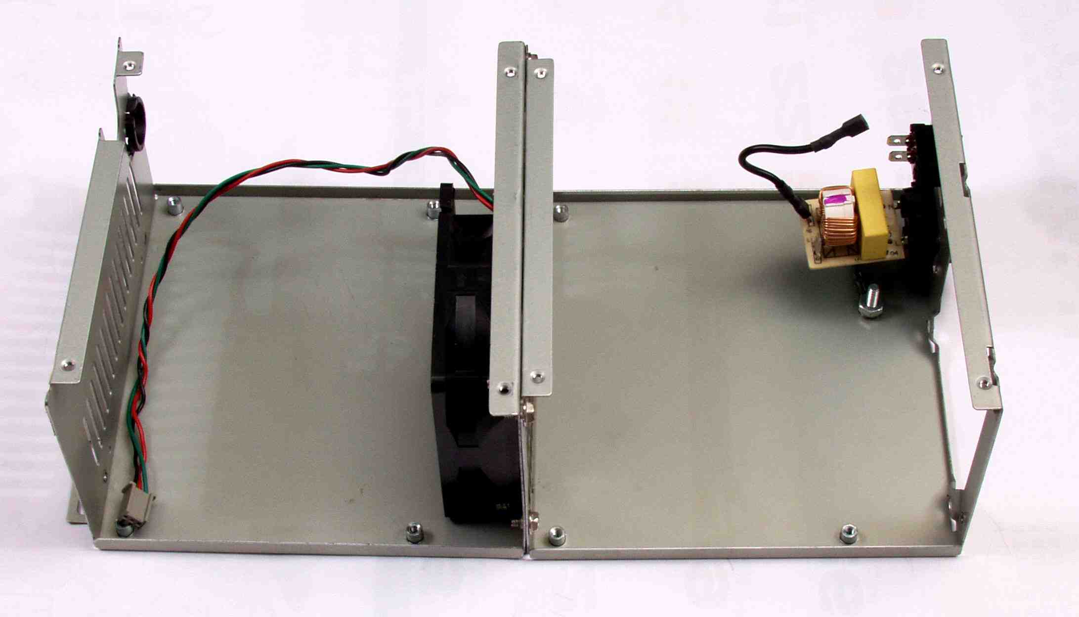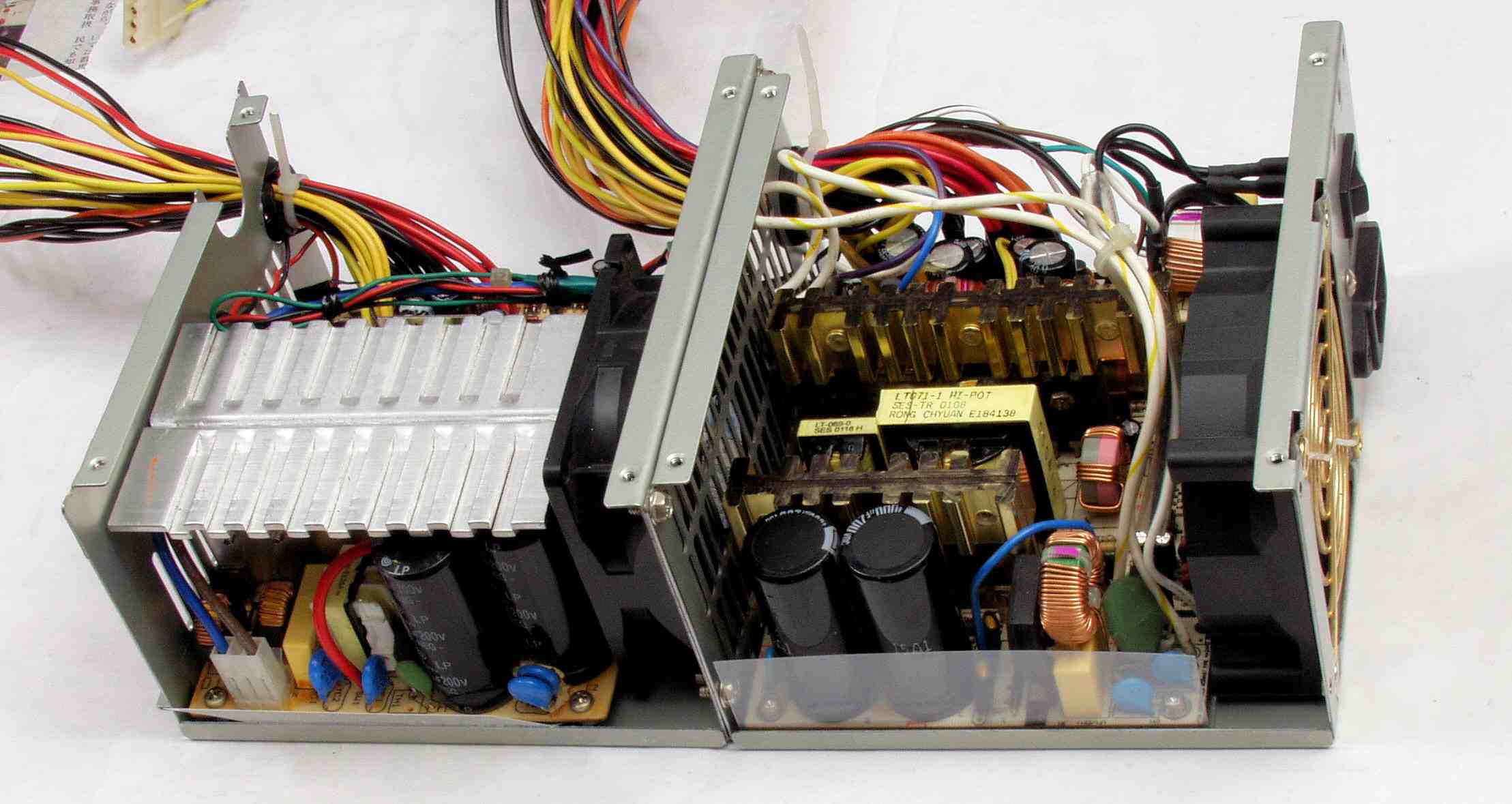 52. タンデム電源完成、右横から見る。左=CPU用、右=HDD用。