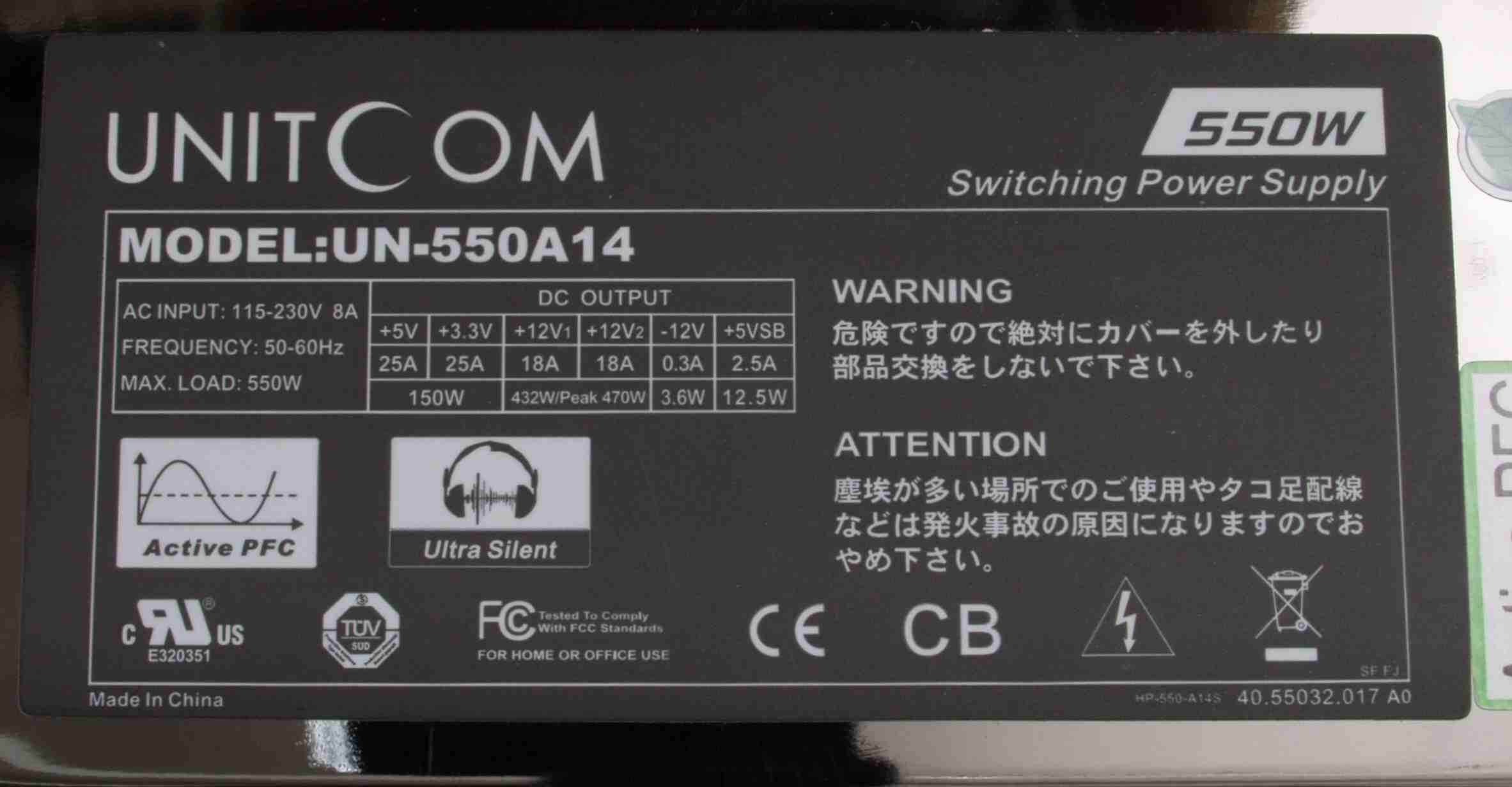 12. CPU用に3.3V=25A、5V=25A、12V=36A。