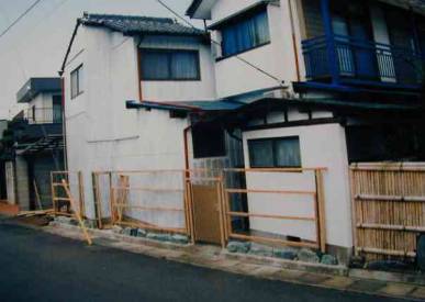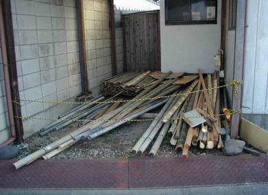 道の縁石と家の土台との間はコンクリートで埋める。 |