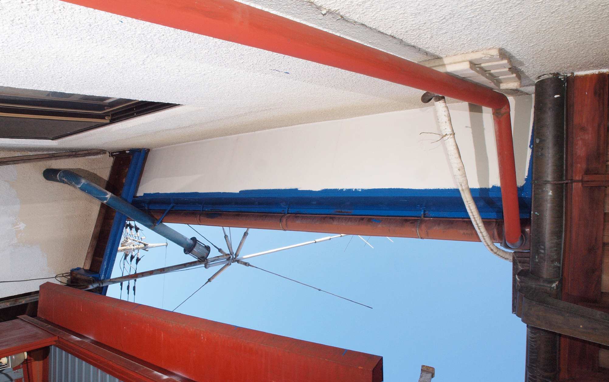 | 32. 修理中 1F温水器部屋 北側軒天、1回目の塗装終了。 |