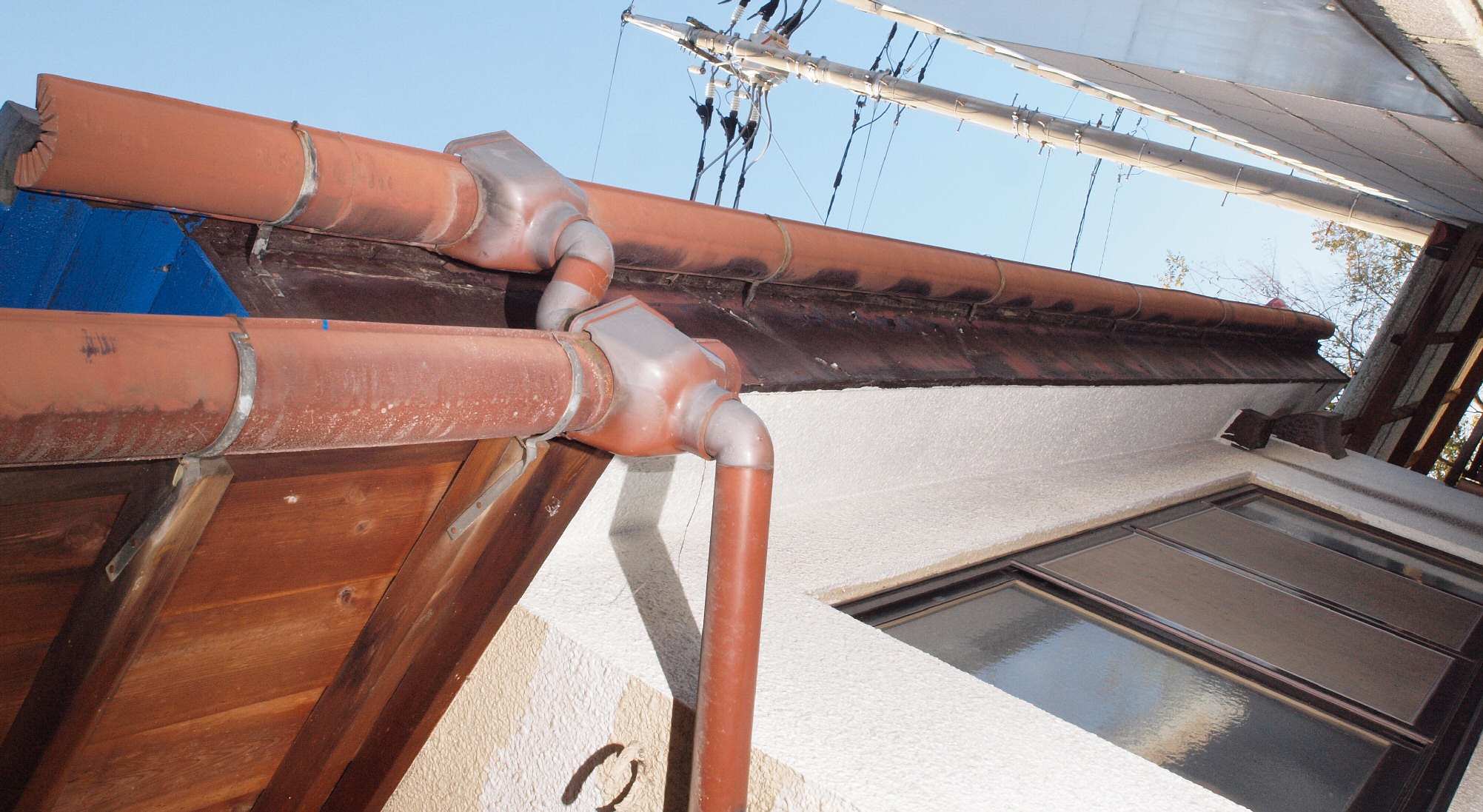 | 44. 修理後 1F台所 北側軒天、縦樋の様子。 |