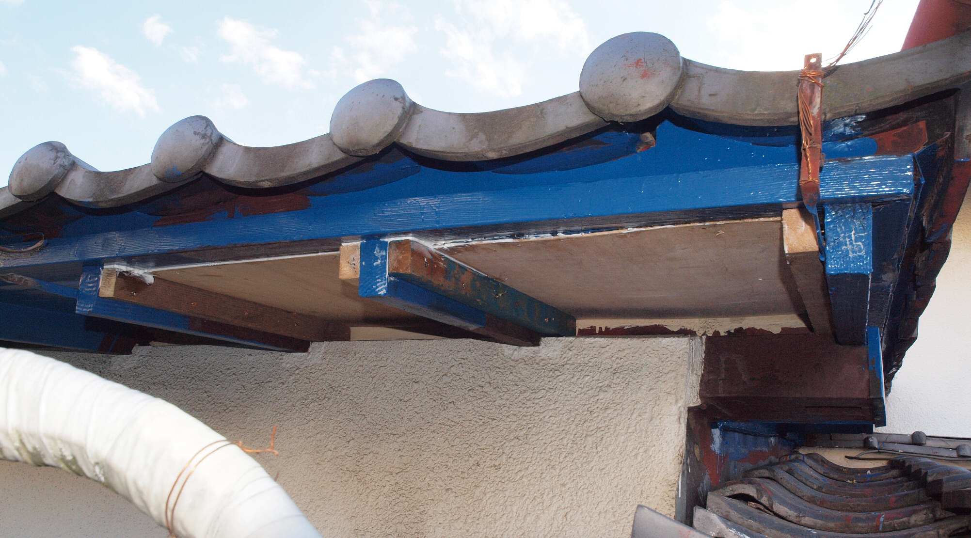 | 41. 修理前 1F台所 北側軒天・鼻隠板、東側から。 |