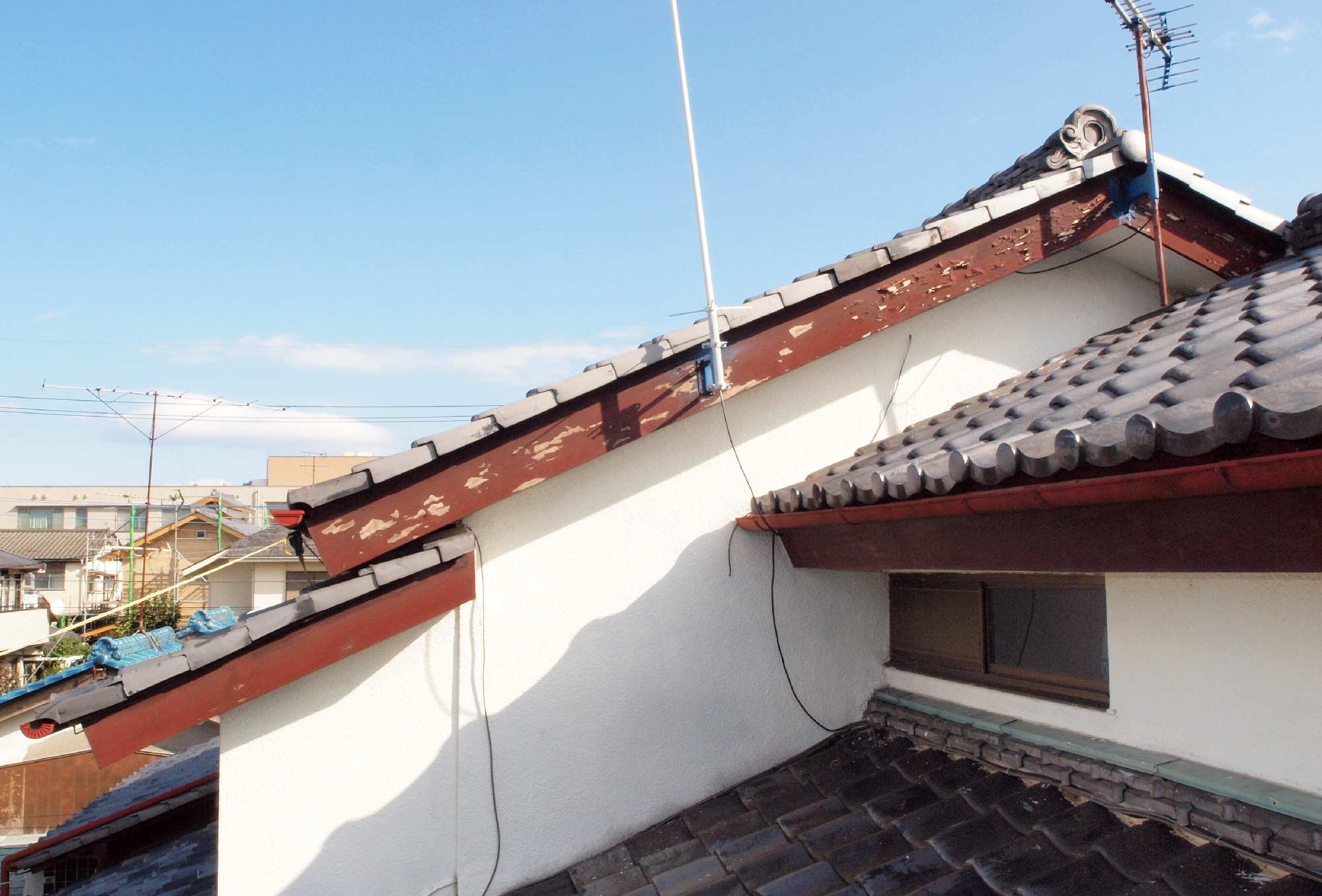 11. 修理中 2F中央 破風板北側、1回目の塗装終了。