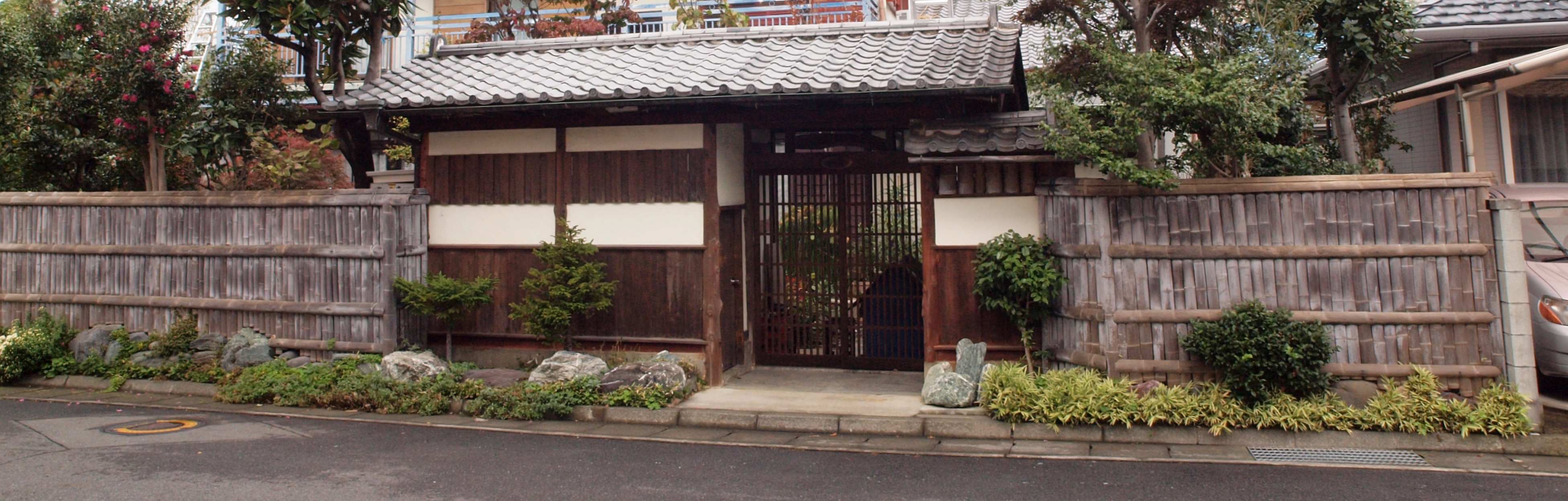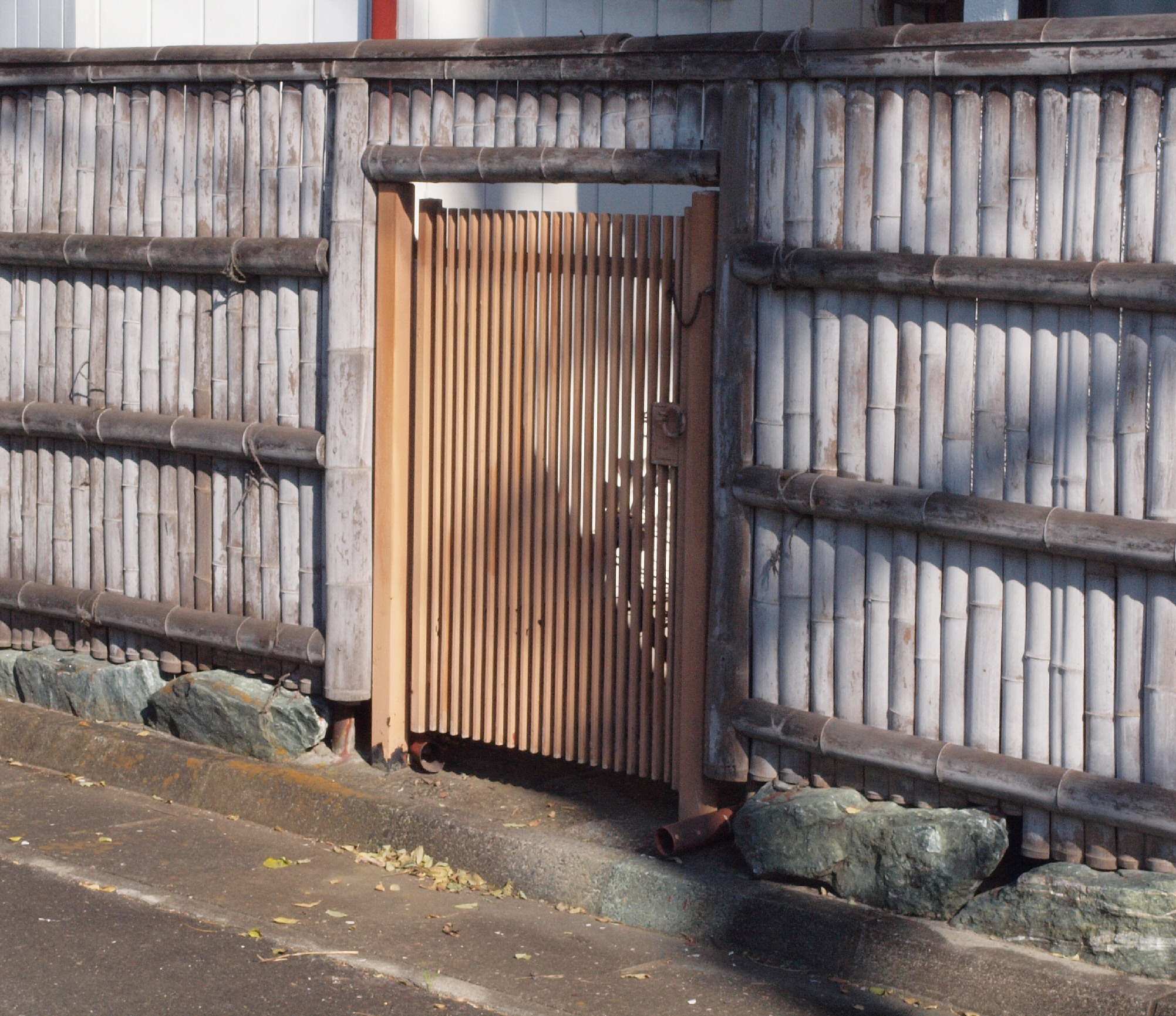 75. 修理・塗装後 西側建仁寺垣、扉側。