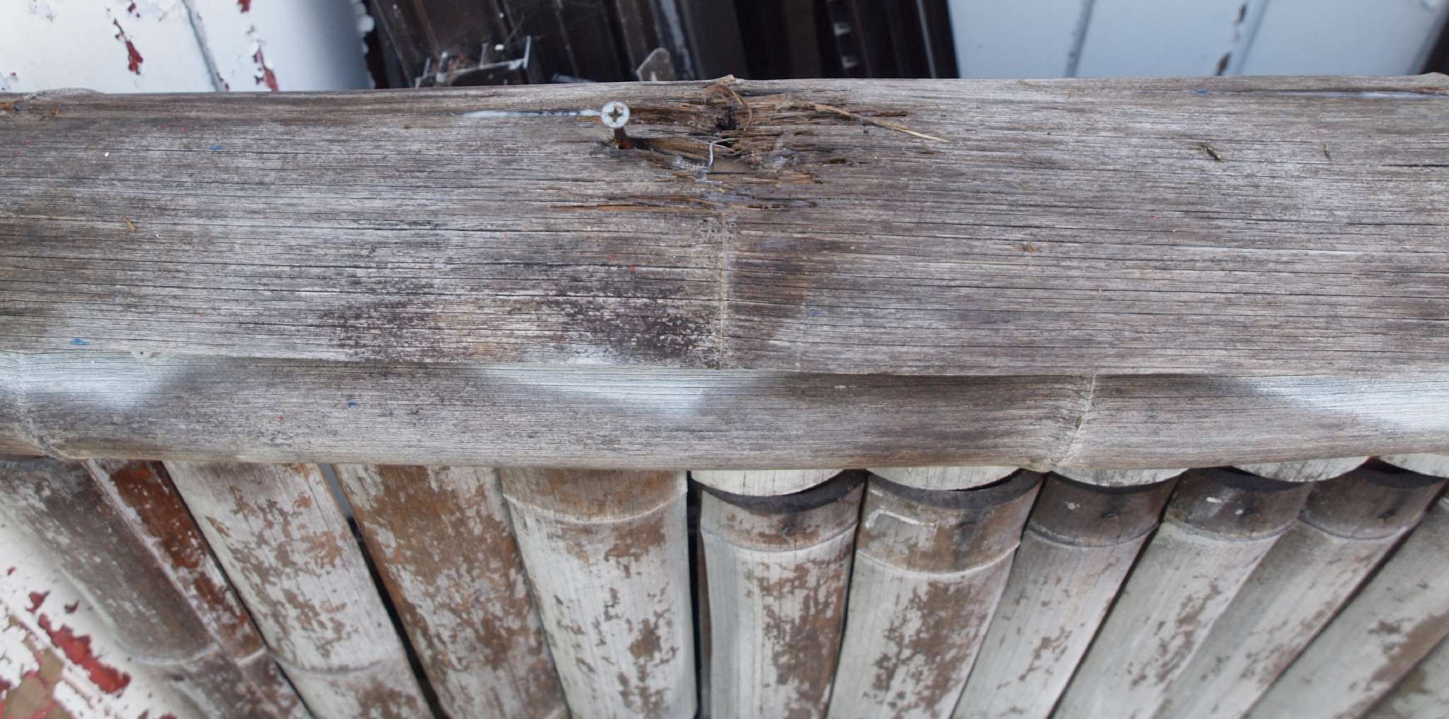 23. 塗装前 南側建仁垣寺、笠竹の腐り。