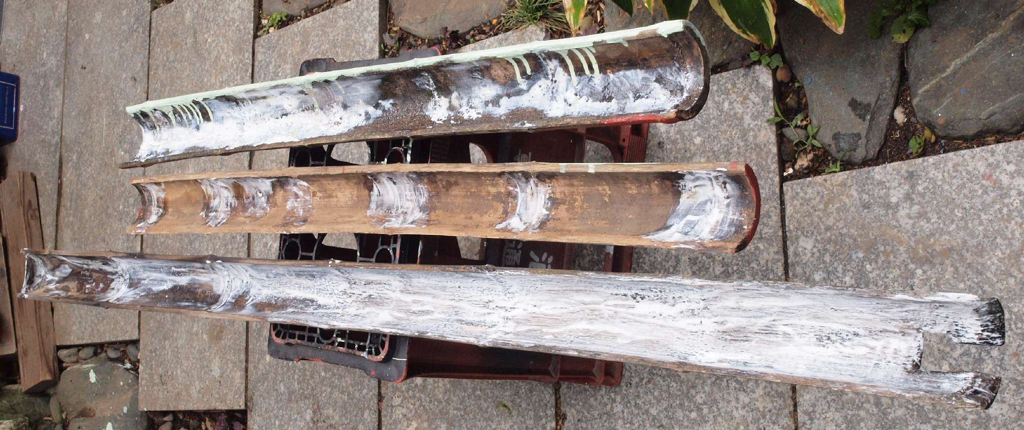 3. 塗装中 建仁寺垣南側。 2回目塗装後。