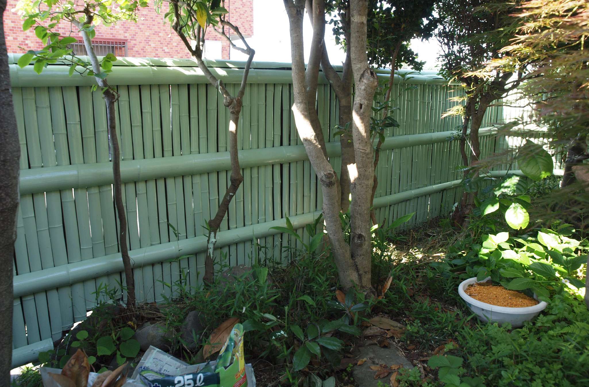 24. 修理・塗装後 南側建仁寺垣、笠竹の腐り。