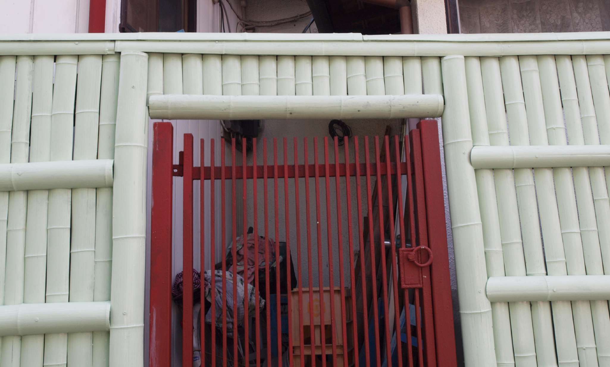 74. 修理・塗装後 西側建仁寺垣、扉裏側。