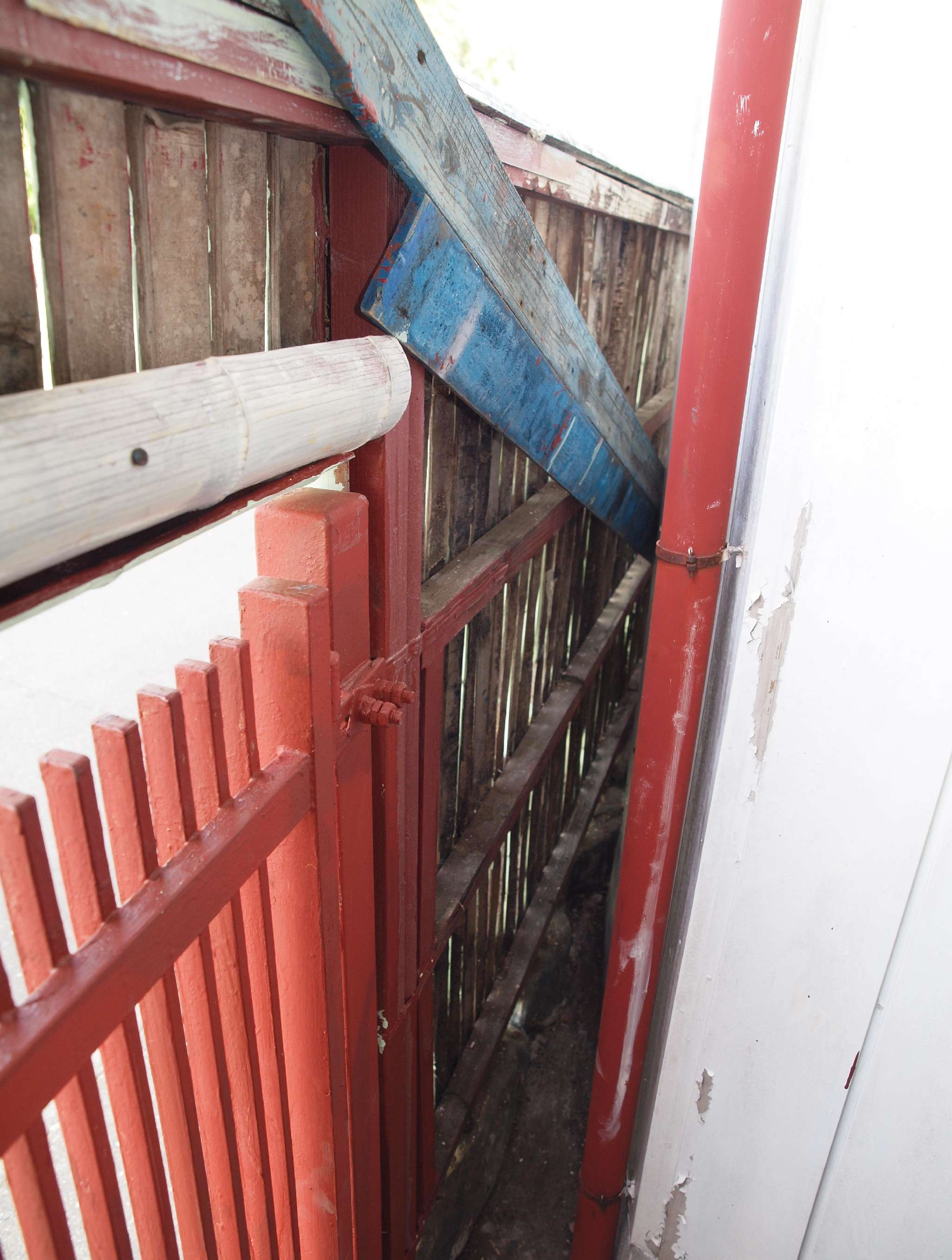 71. 塗装・修理前 西側建仁寺垣、扉。