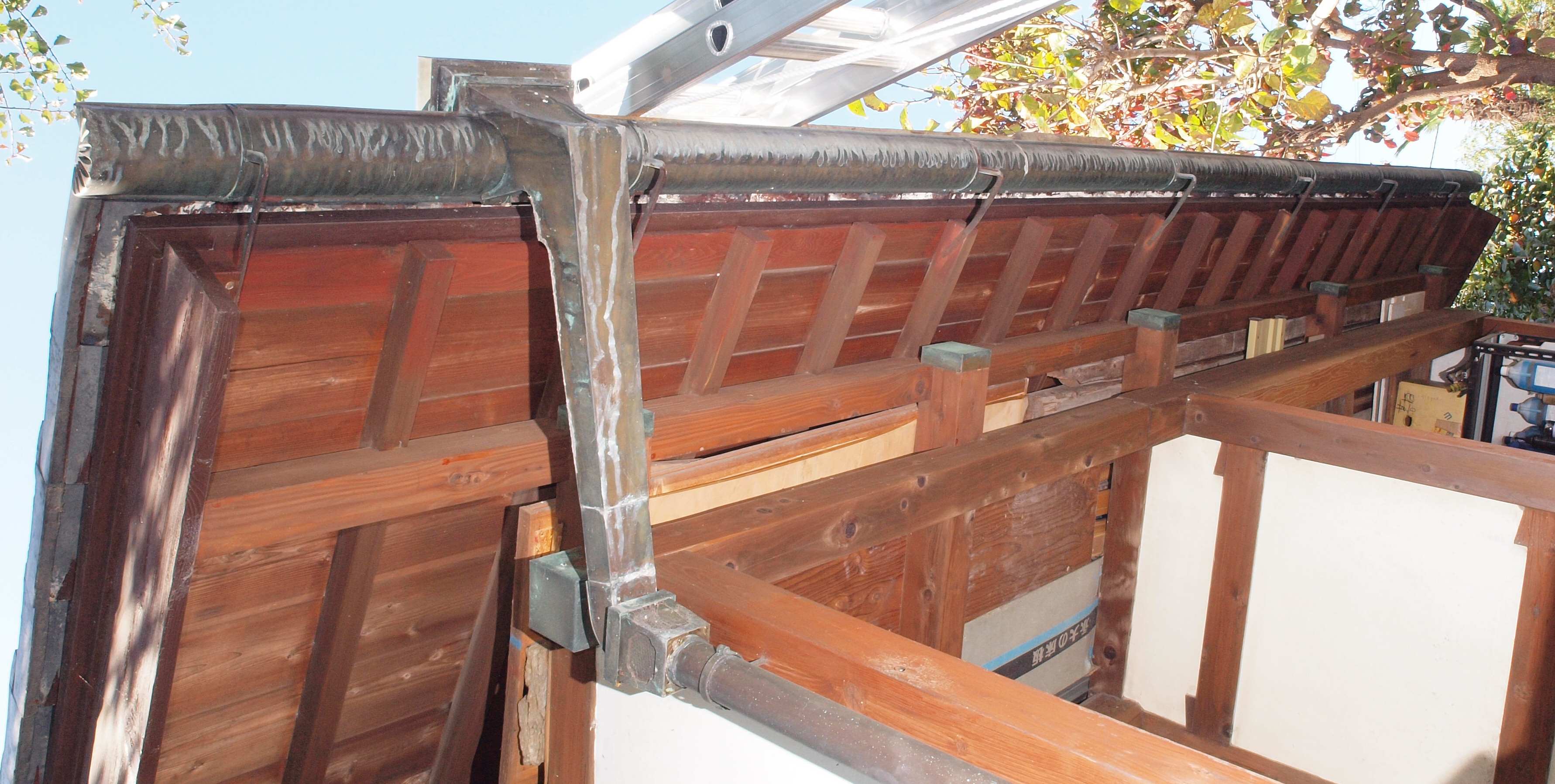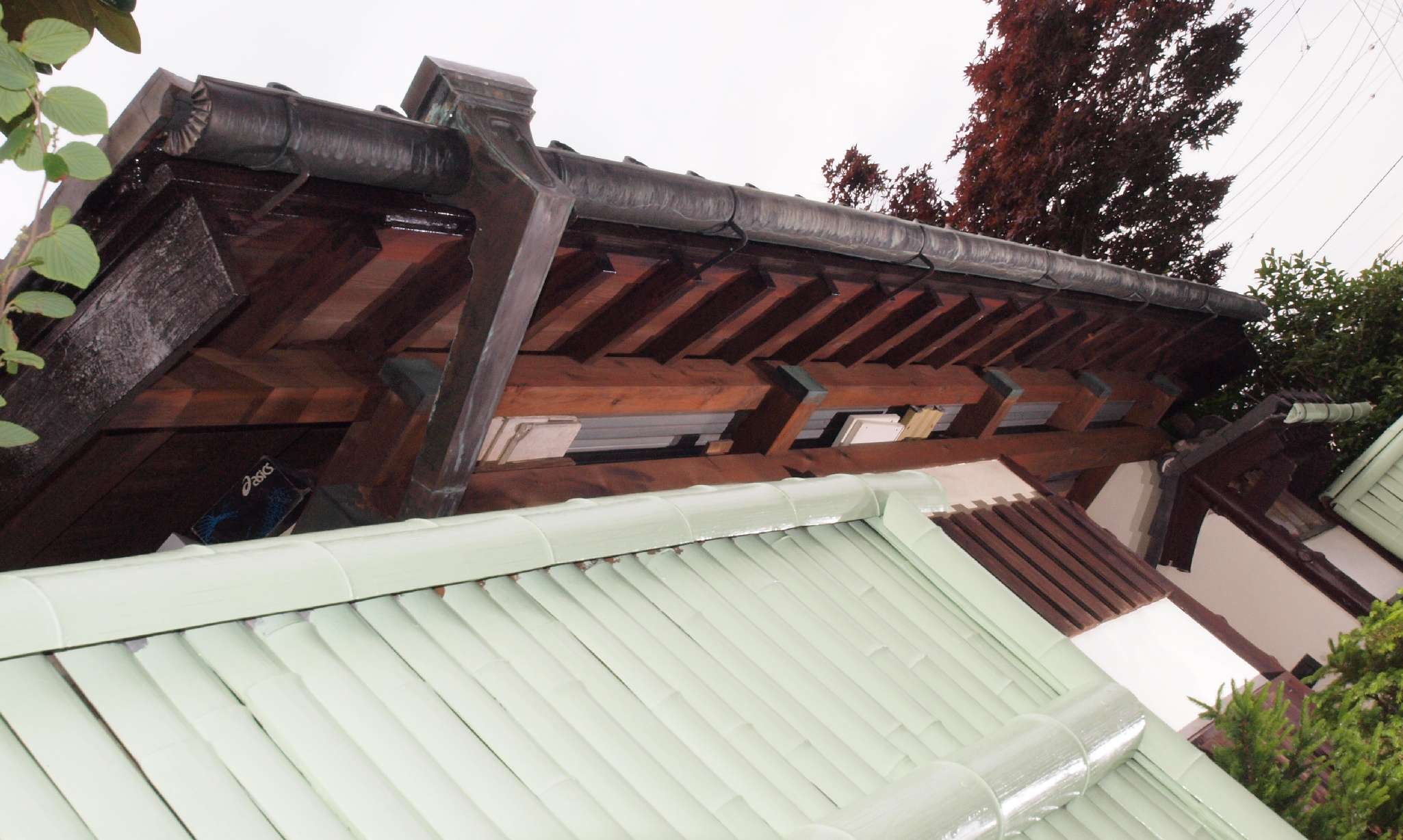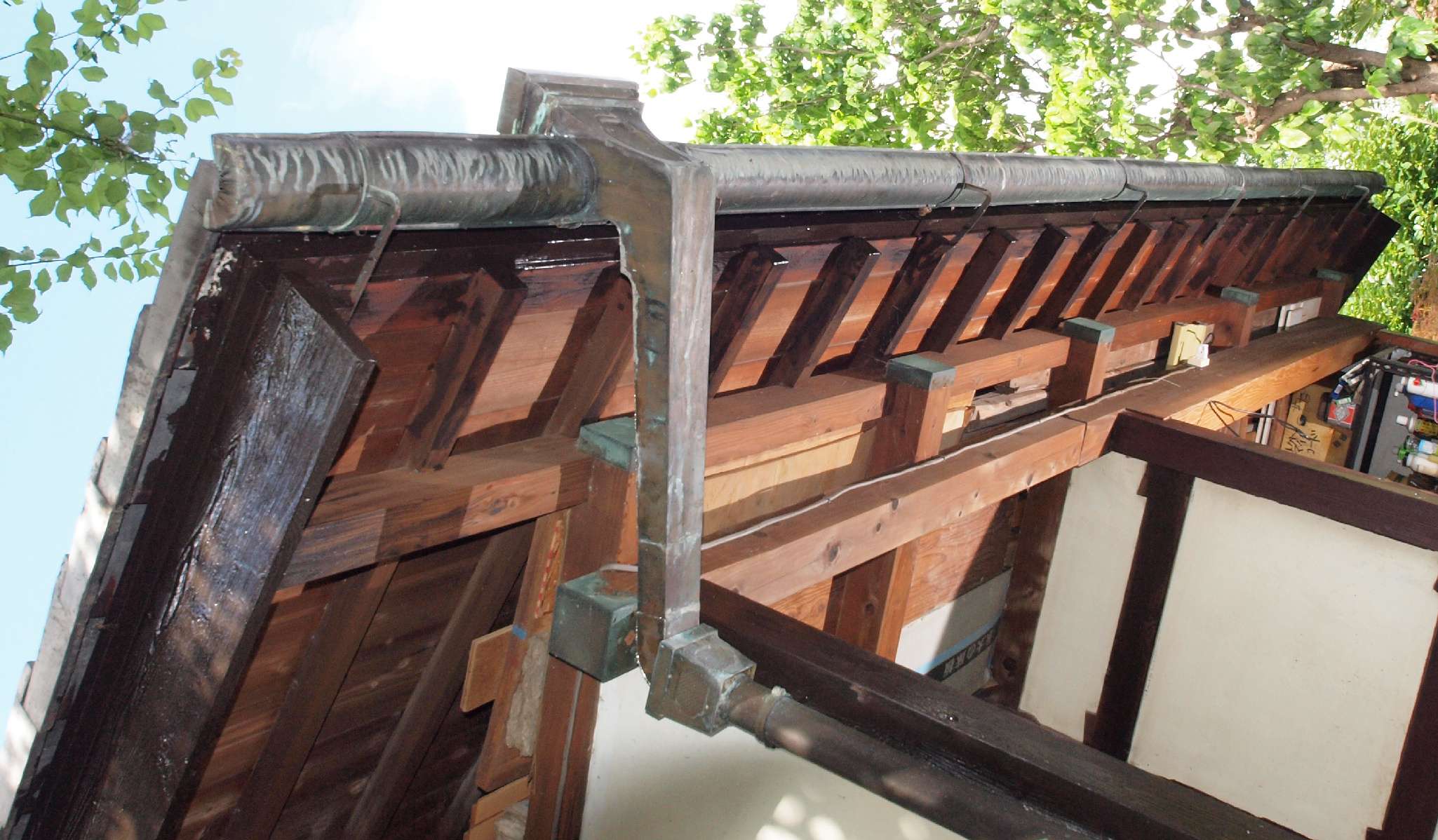 72. 平成29年塗装・修理中 北側軒天、東より。 樋を外し塗装中。