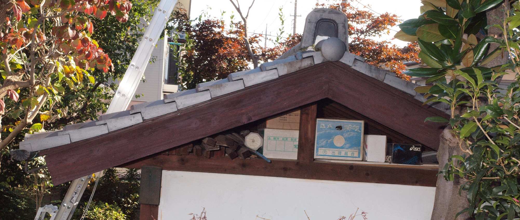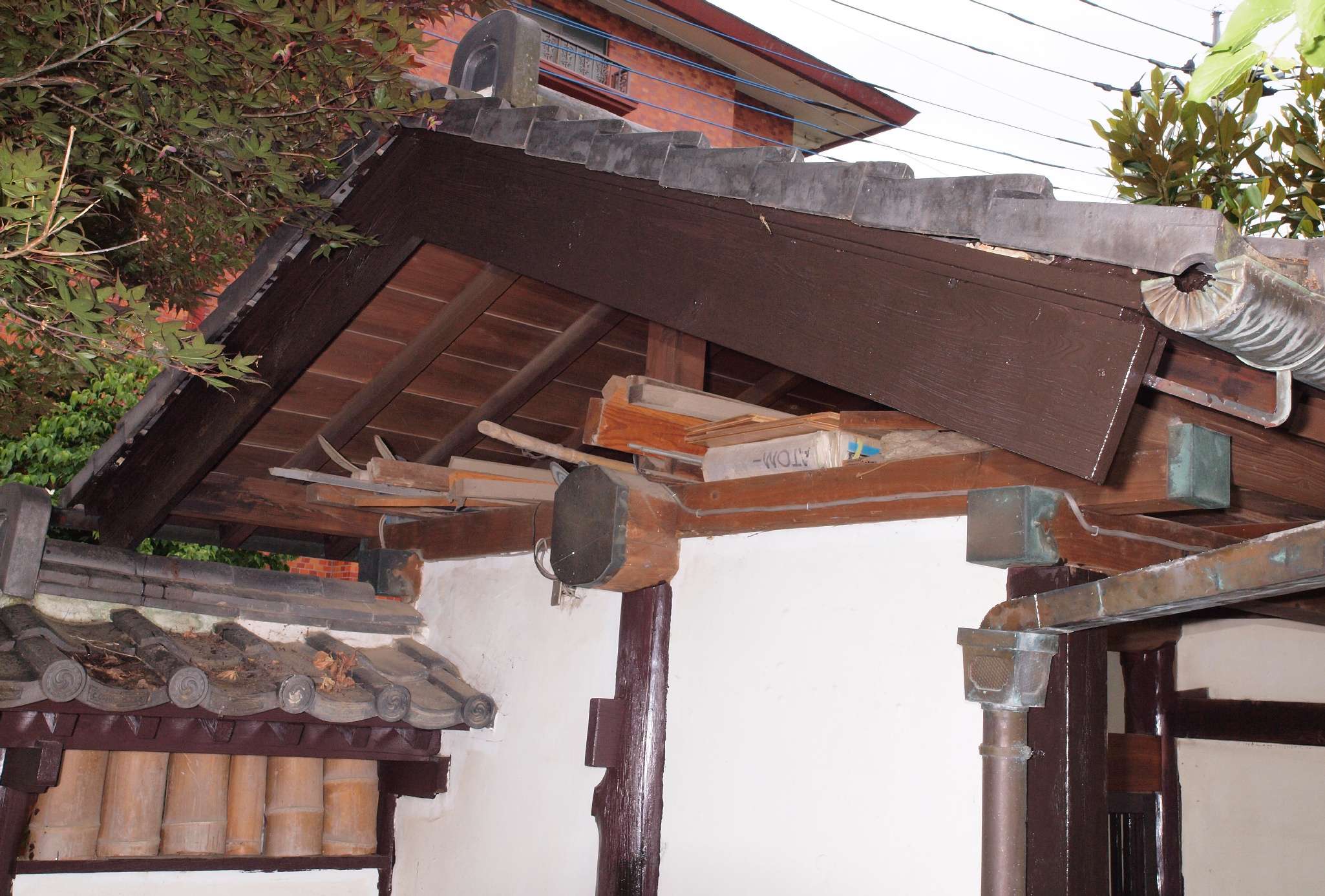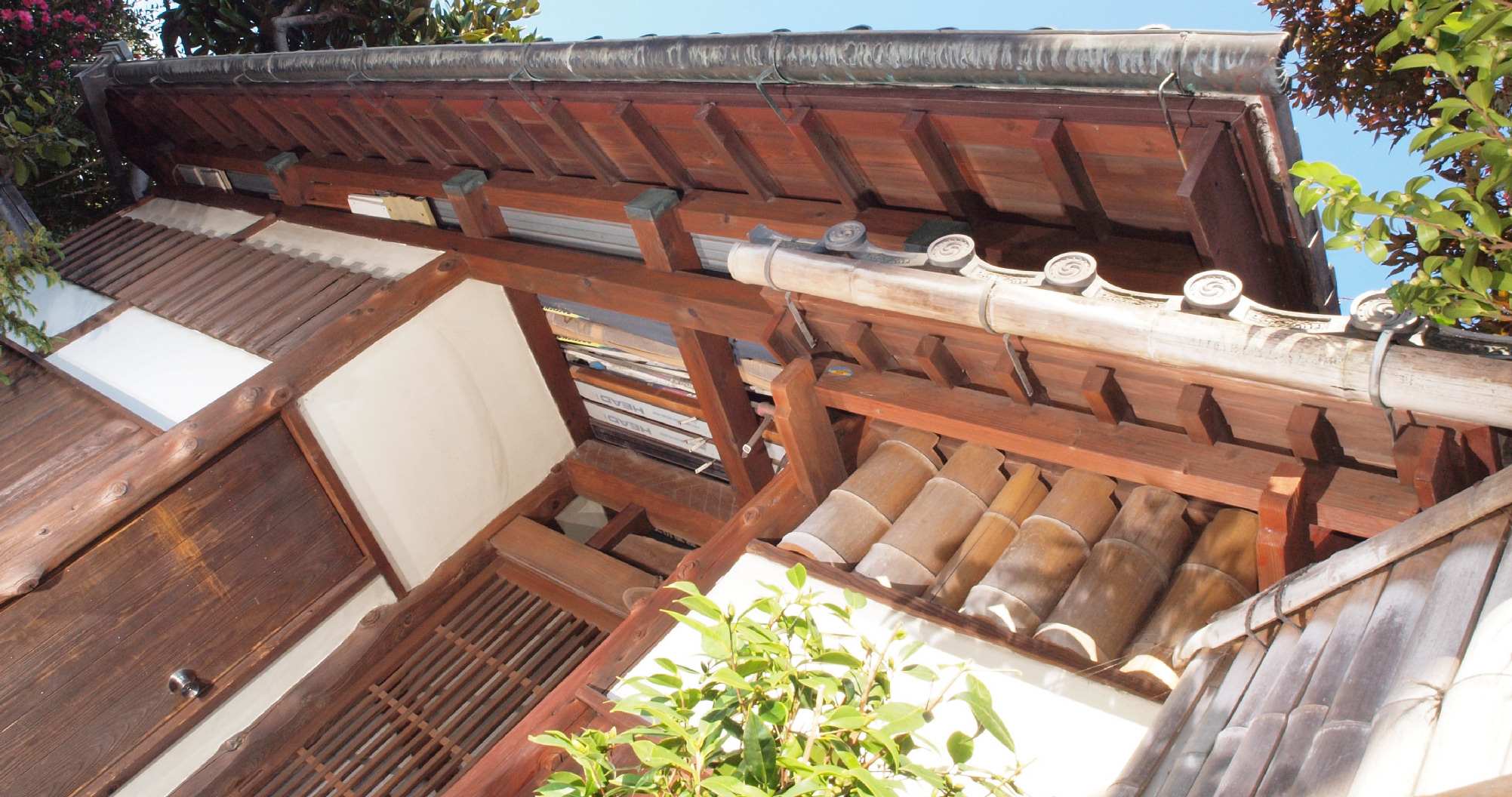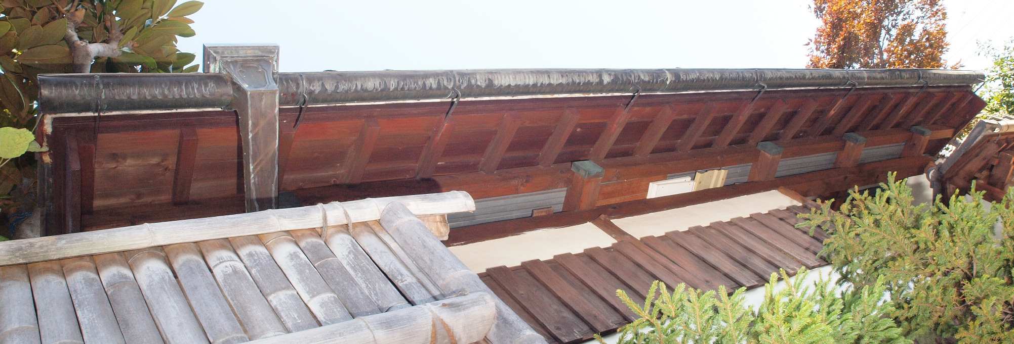 72. 平成29年塗装・修理中 北側軒天、東より。 樋を外し塗装中。