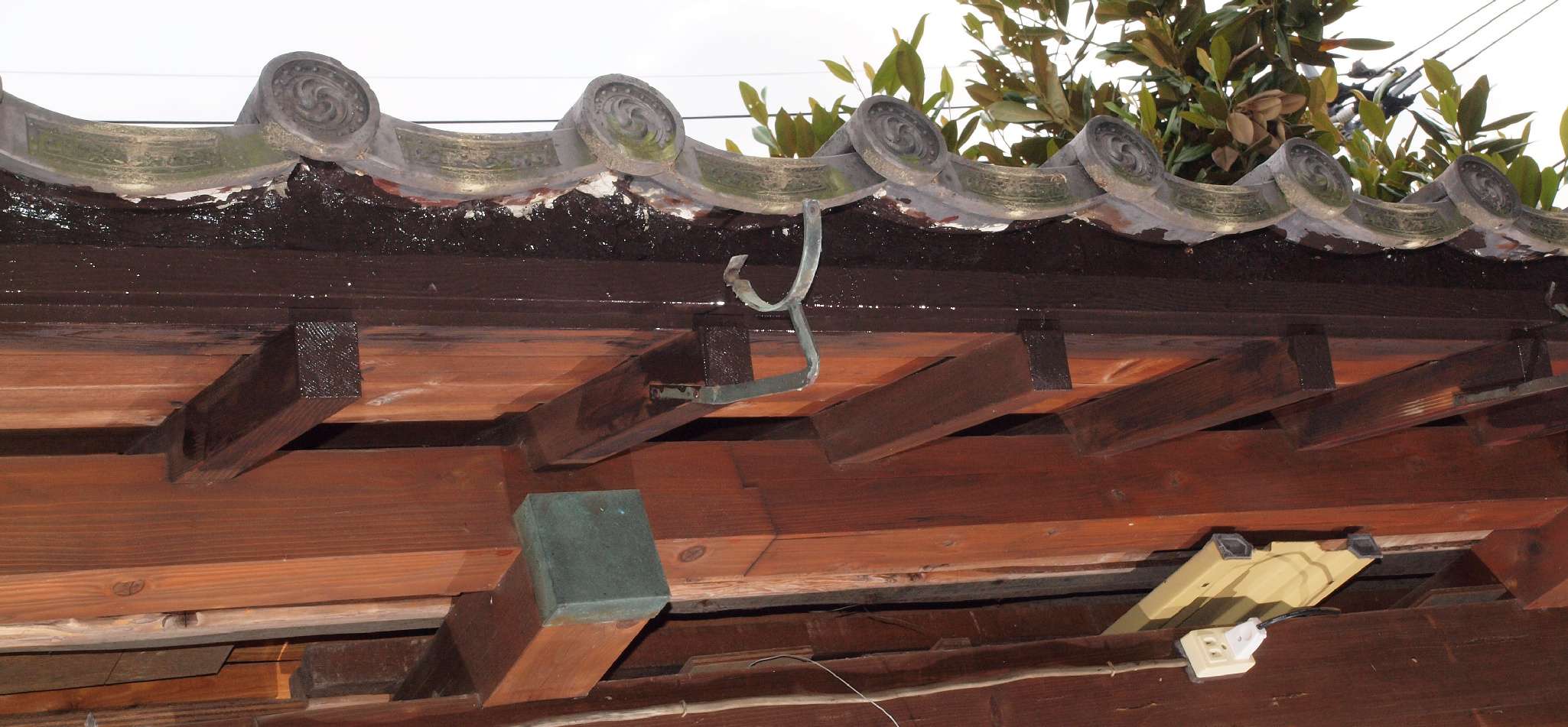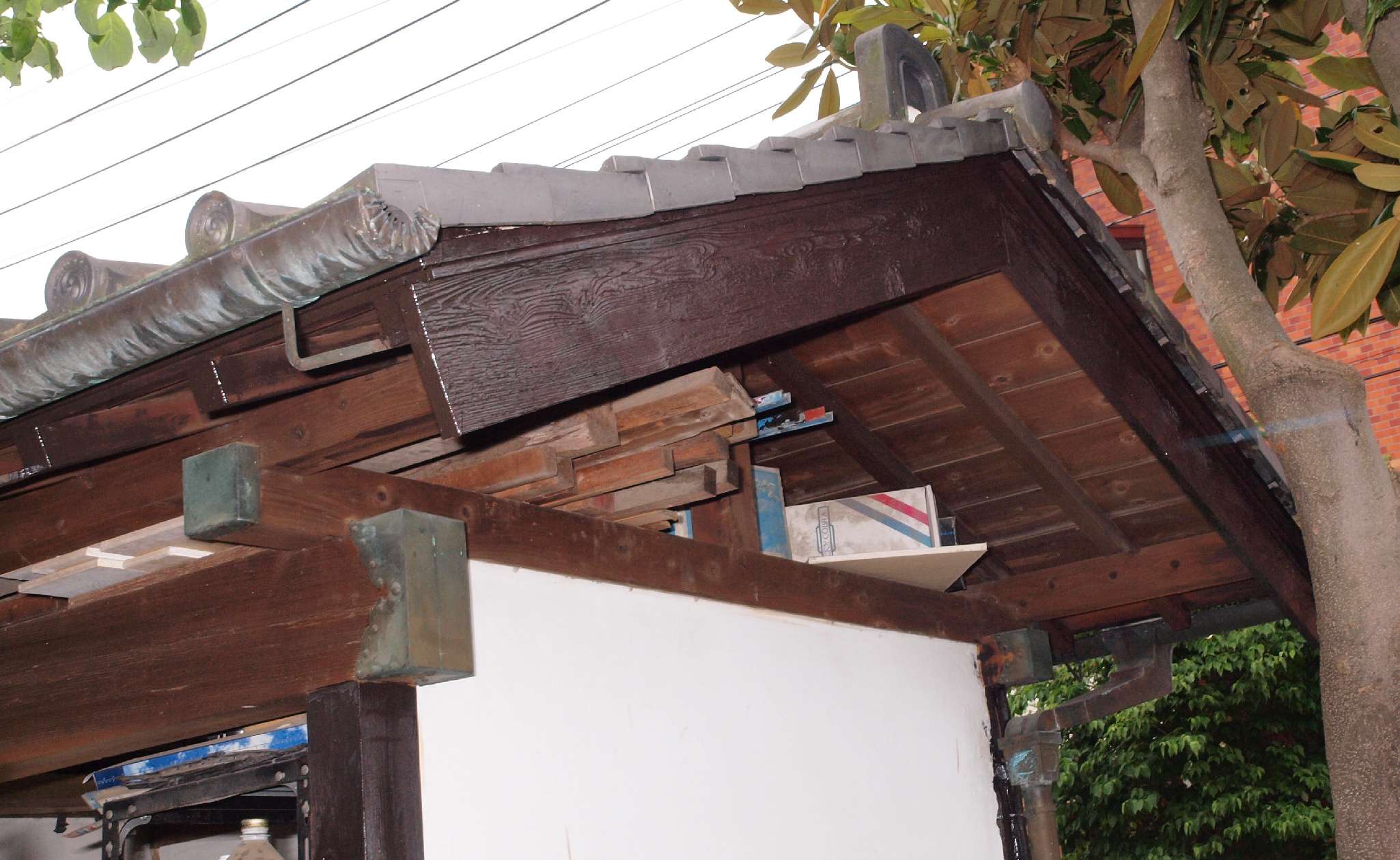 73. 平成29年塗装・修理中 北側軒天、東より。 広小舞、淀を塗装。