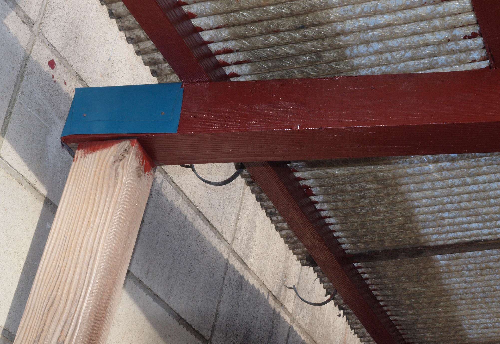 11. 平成25年修理中 桁、垂木を塗装。