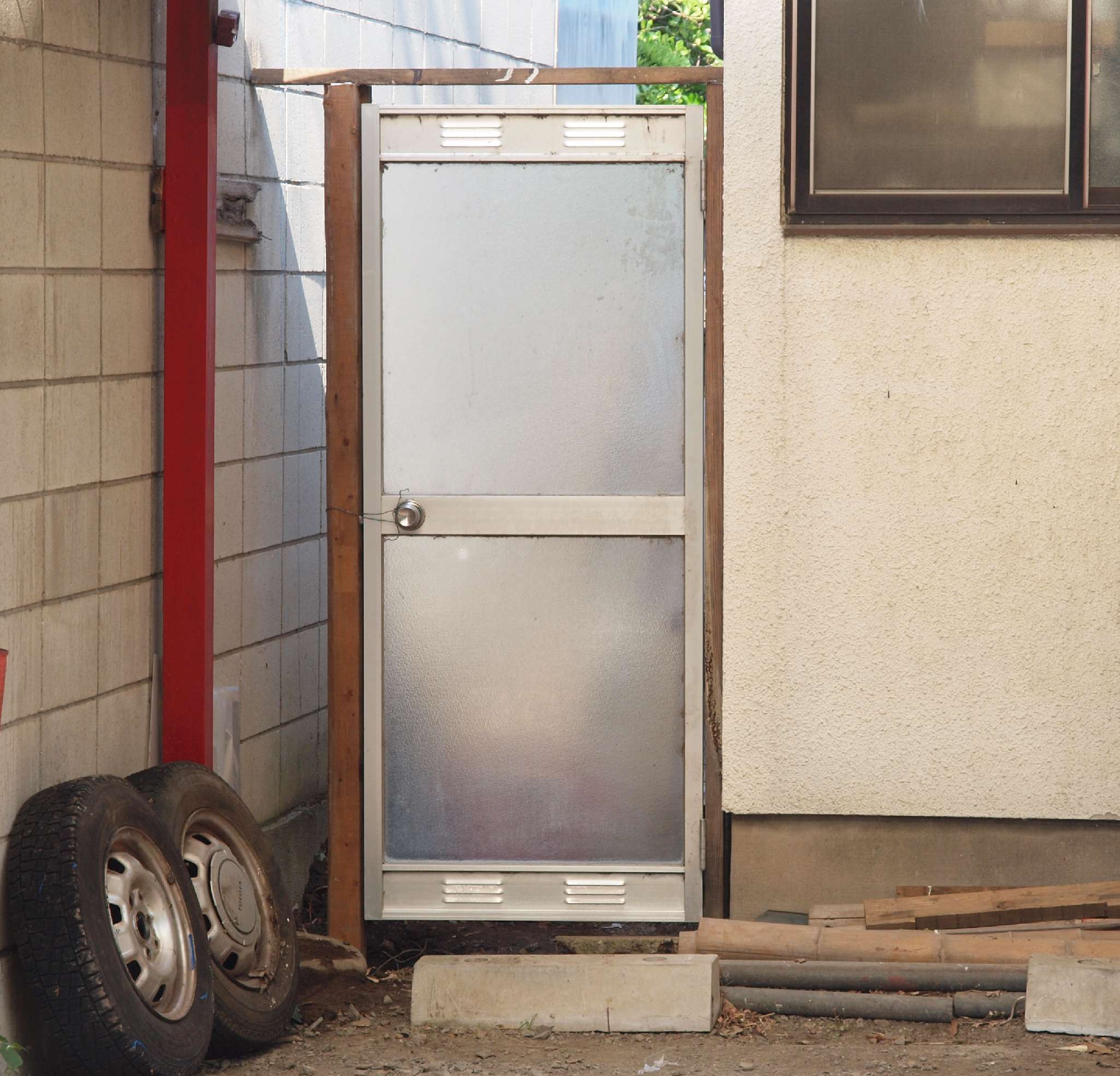 22. 平成29年修理前 入り口。アルミ製に交換する。