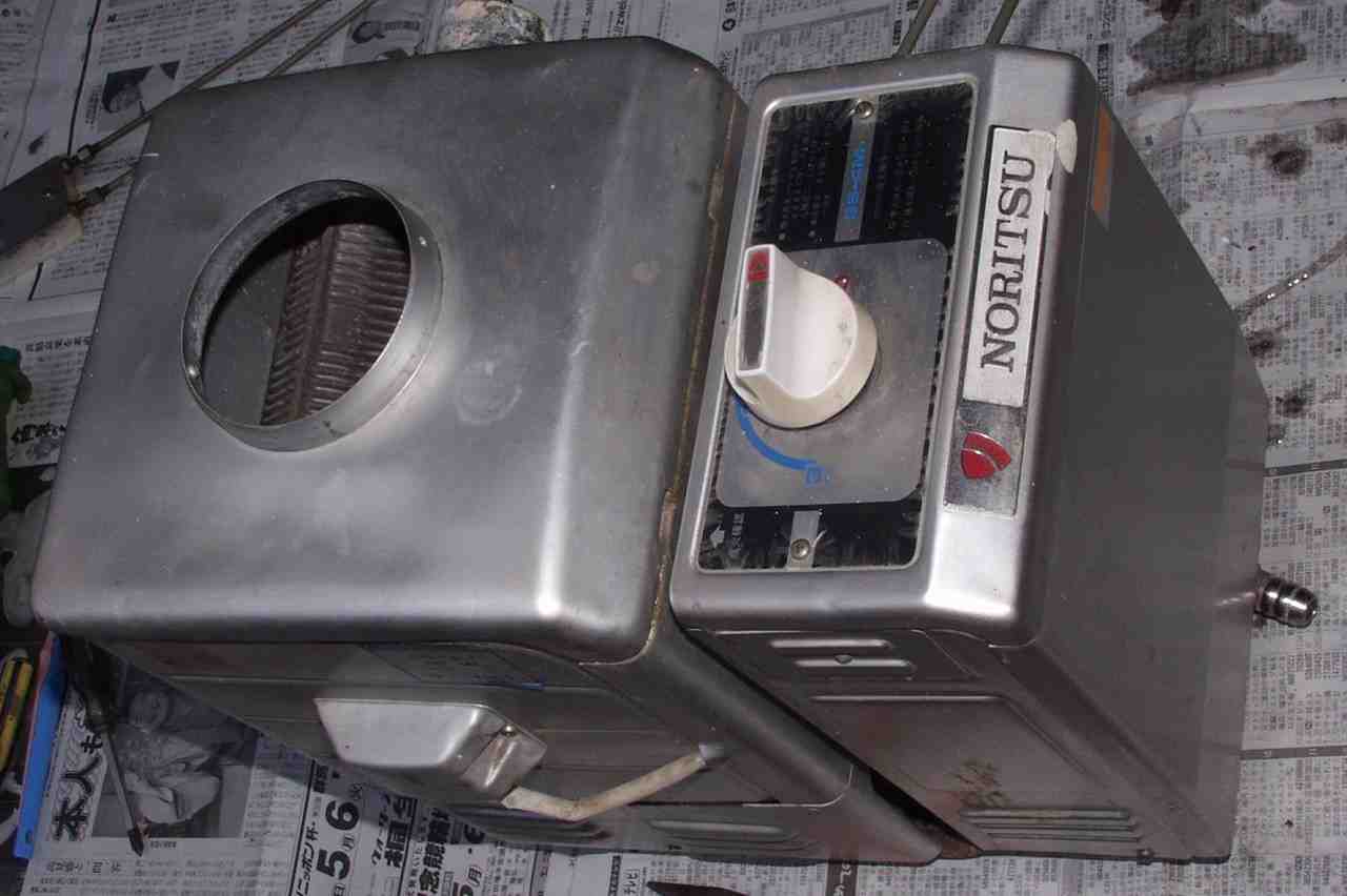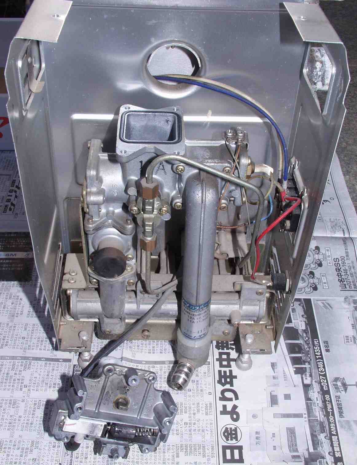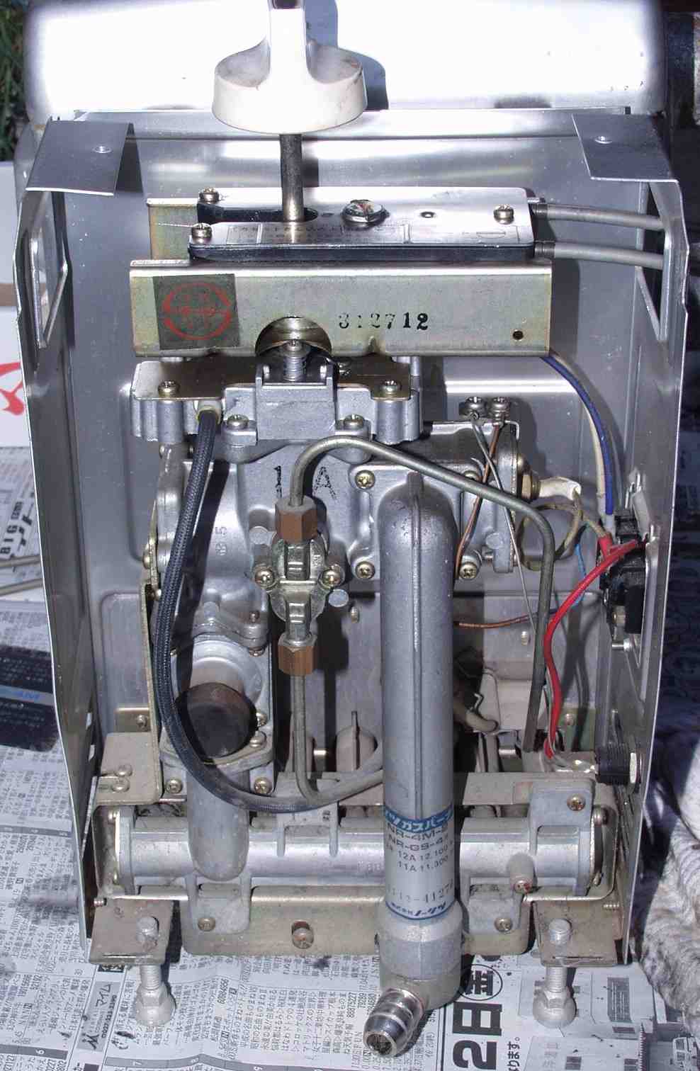 131.操作弁のヒンジが出ている。 左=がメインバーナー用 右=ガス入力 下=パイロット用