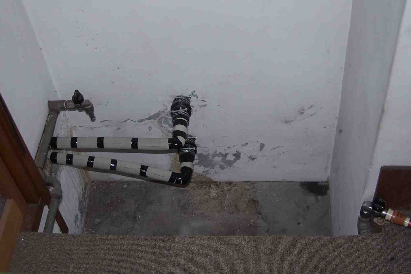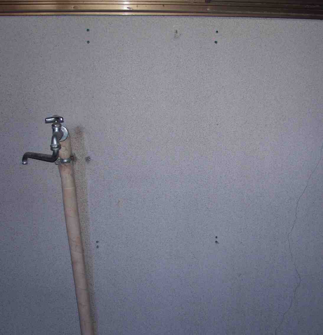 41.給水配管 この後金具で固定 左2本のビニールホースは試験用の追い炊き用