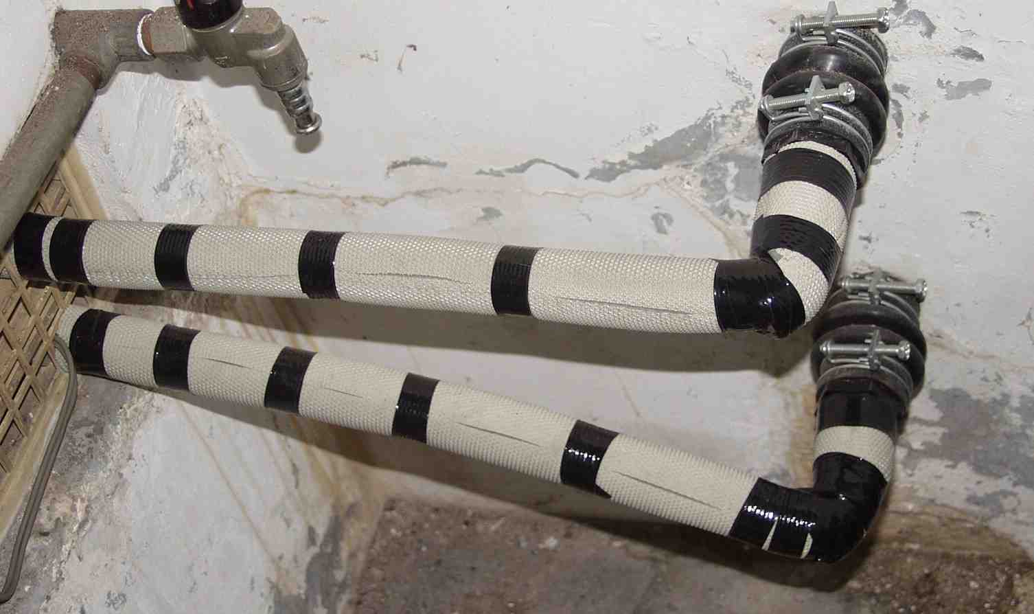 57.追い炊き配管 保温後浴槽への接続配管、テープを巻完成