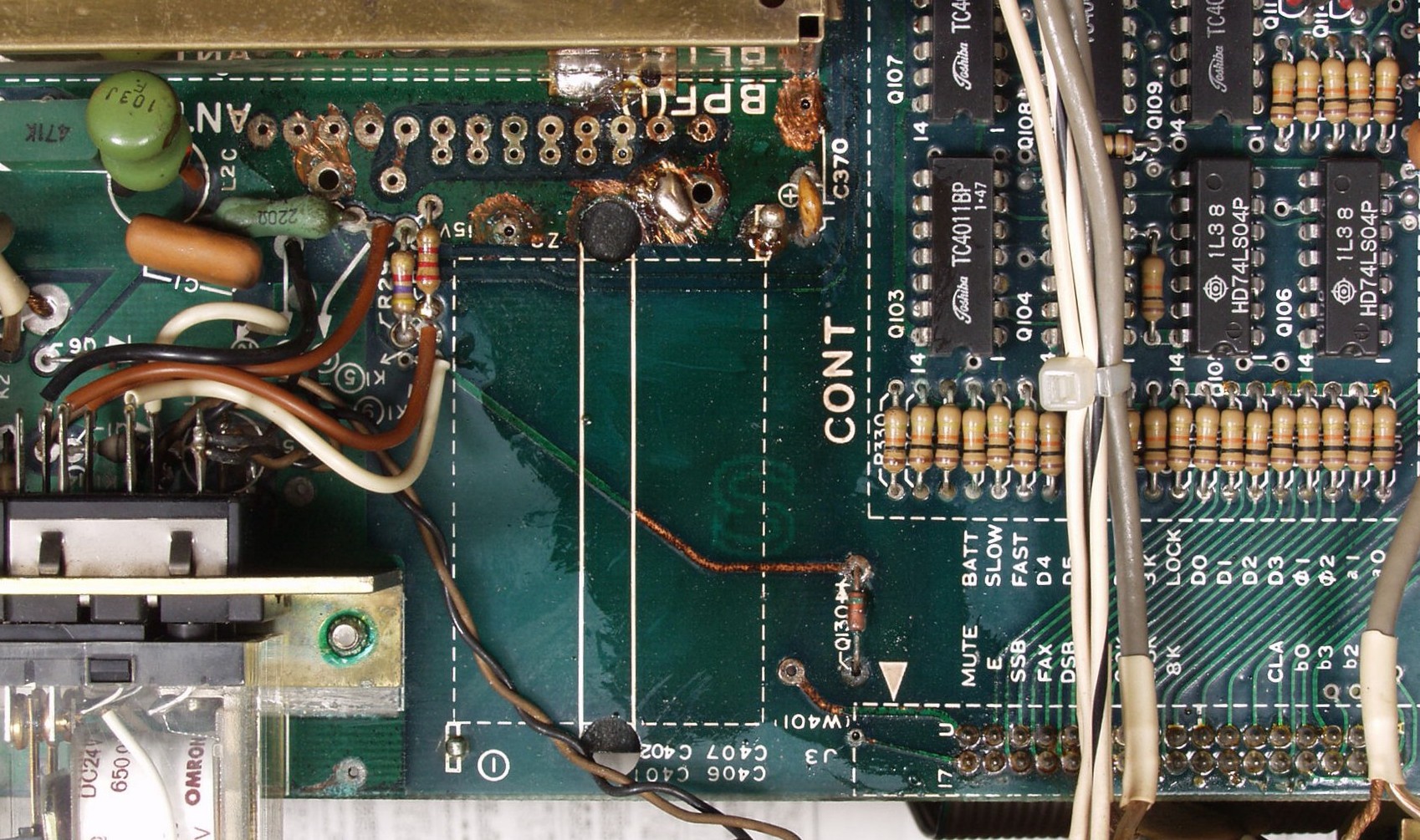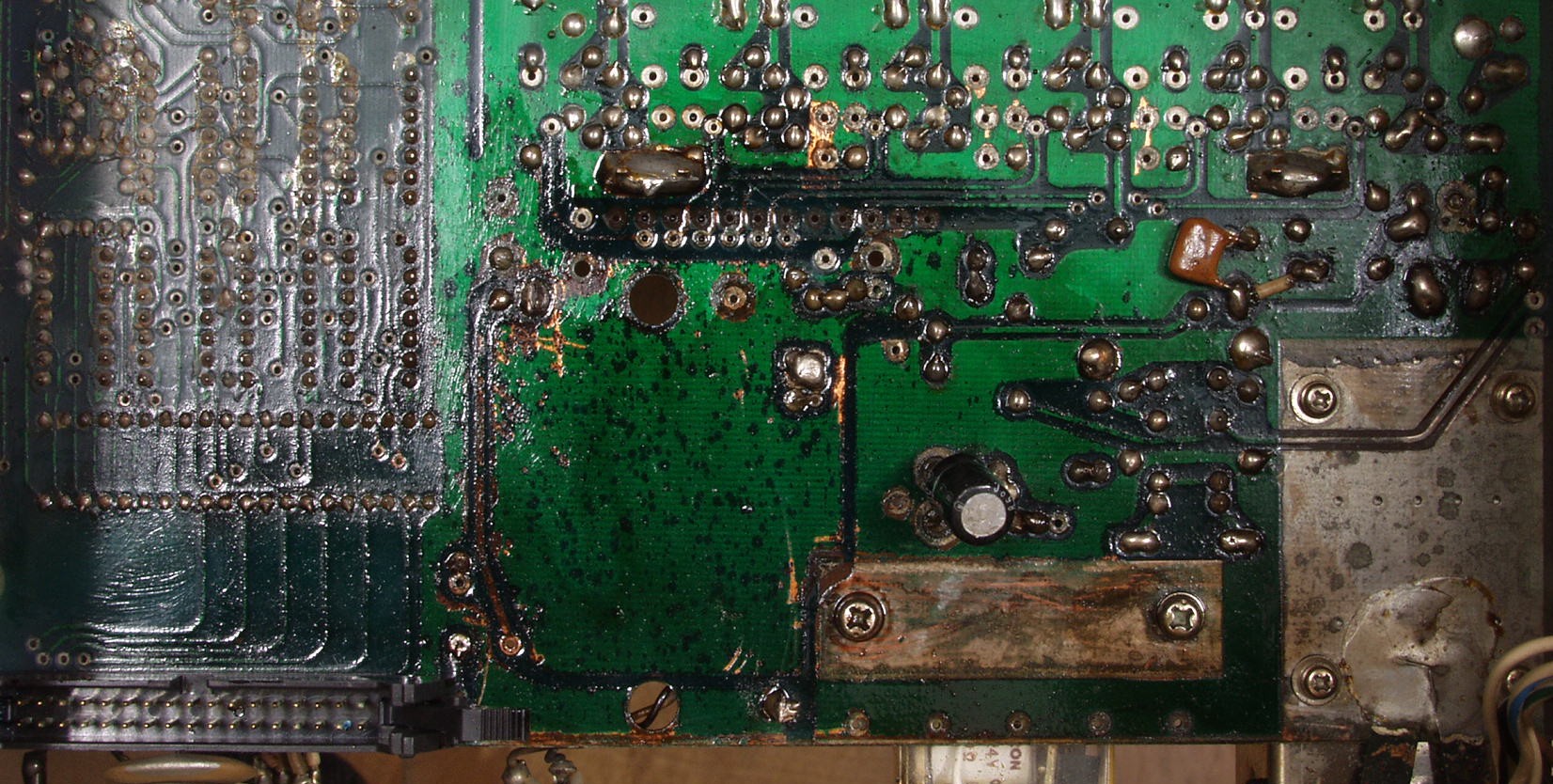 | C. 修理の様子 C−1A. 修理前 電池の液漏れで腐食した部分 |
