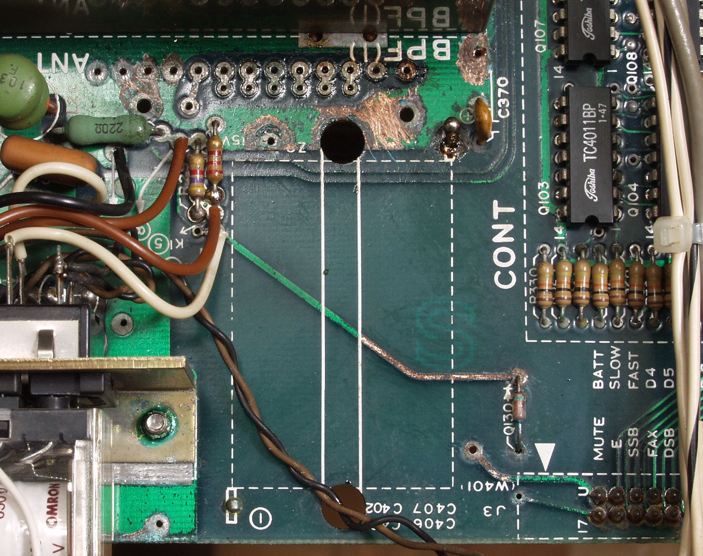 | C−1B. 修理中 シールドの下、コネクターまで達していた、ひたすら削り取る |