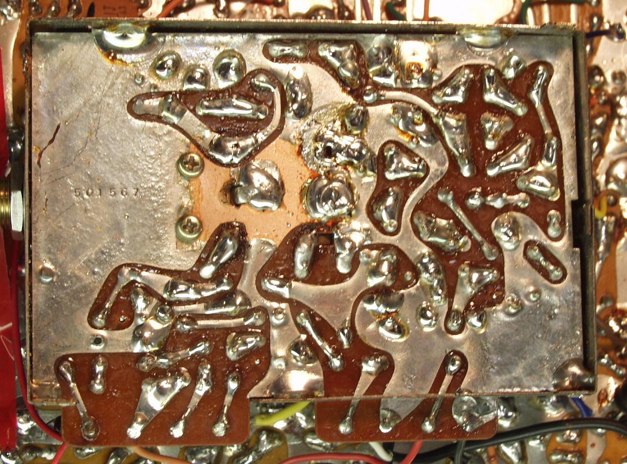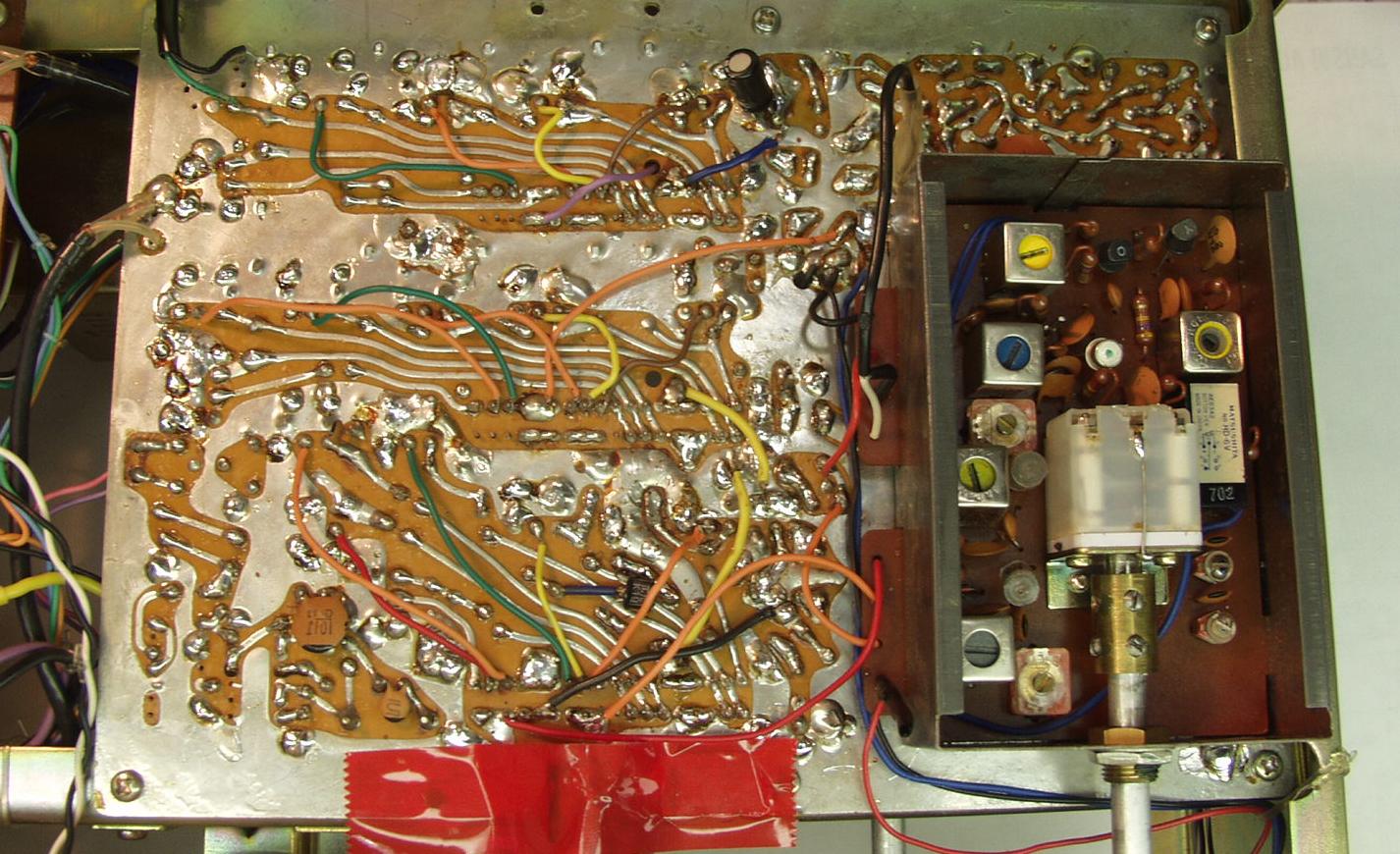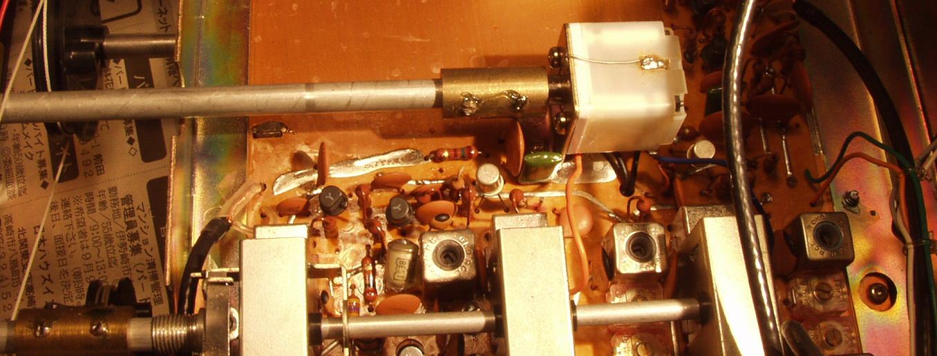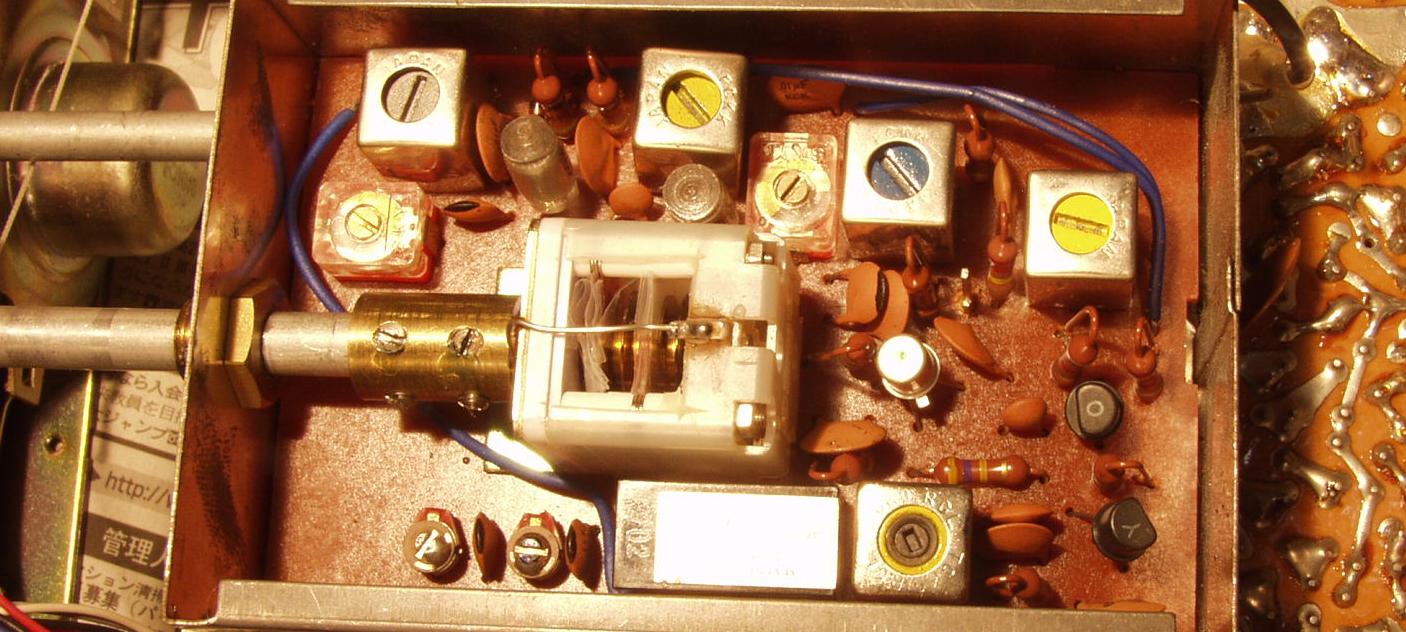 A−2. 修理前 第1IF増幅修理(DEFバンドで使用)バリコンの片側(左)の絶縁体(シリコンシート)が抜けている
