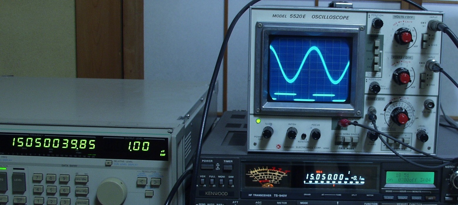F−2. 下の波形は1KHZ、940のRITが動かしにくいので、本体の周波数を動かし同期を取る